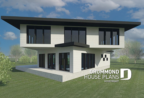 modern and Scandinavian style house plan with a lots of windows designed by the Rivière-du-loup agency of Dessins Drummond