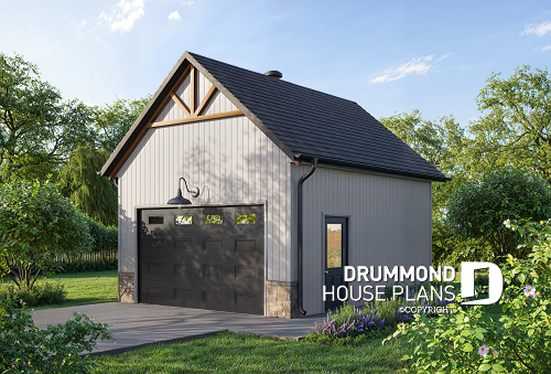 Beautiful custom double garage plan designed by our architectural technicians in Quebec. A practical garage with farmhouse style, combining aesthetics, functionality, and tailored design.