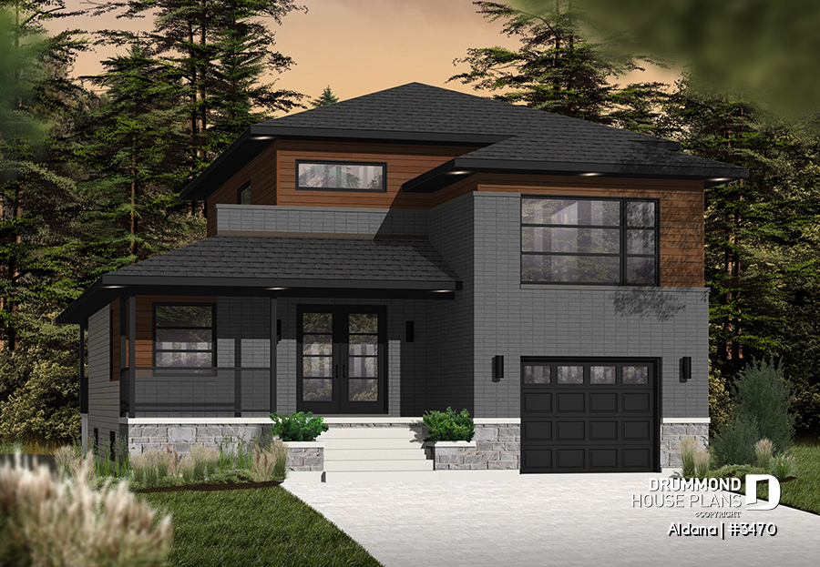 Contemporary Two-Story House Plan With Garage, Open Living Layout And Covered Rear Terrace – ALDANA (#3470)