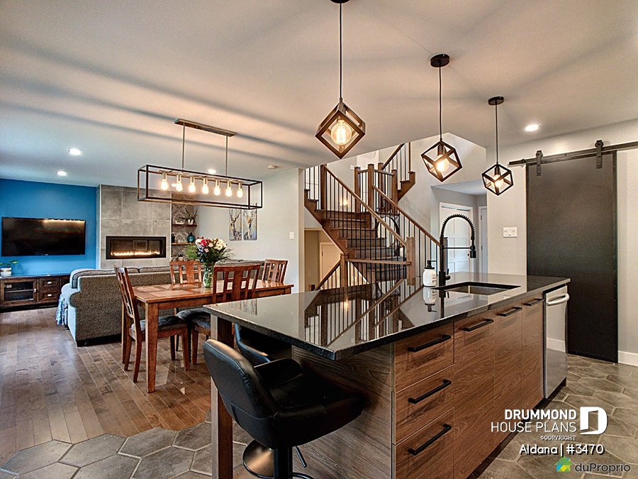 Open-concept layout bringing together the kitchen, dining area and living room for smooth circulation.