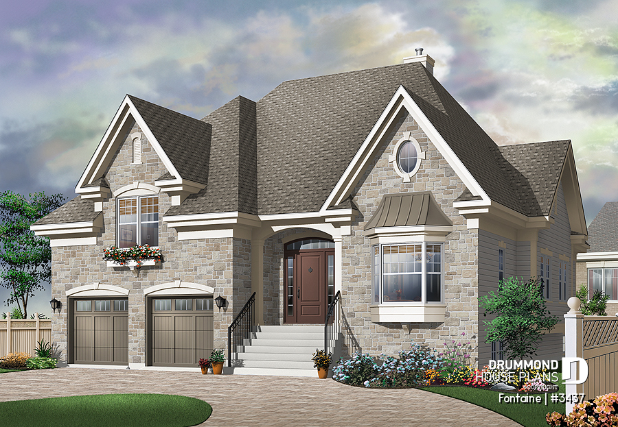 The FONTAINE house plan (#3437) presents an original interior layout that responds perfectly to the growing demand for manor-style homes featuring a double garage and a more accommodating, family-friendly footprint. Inspired by European architecture, this home plan combines elegance, practicality and thoughtful spatial organization.