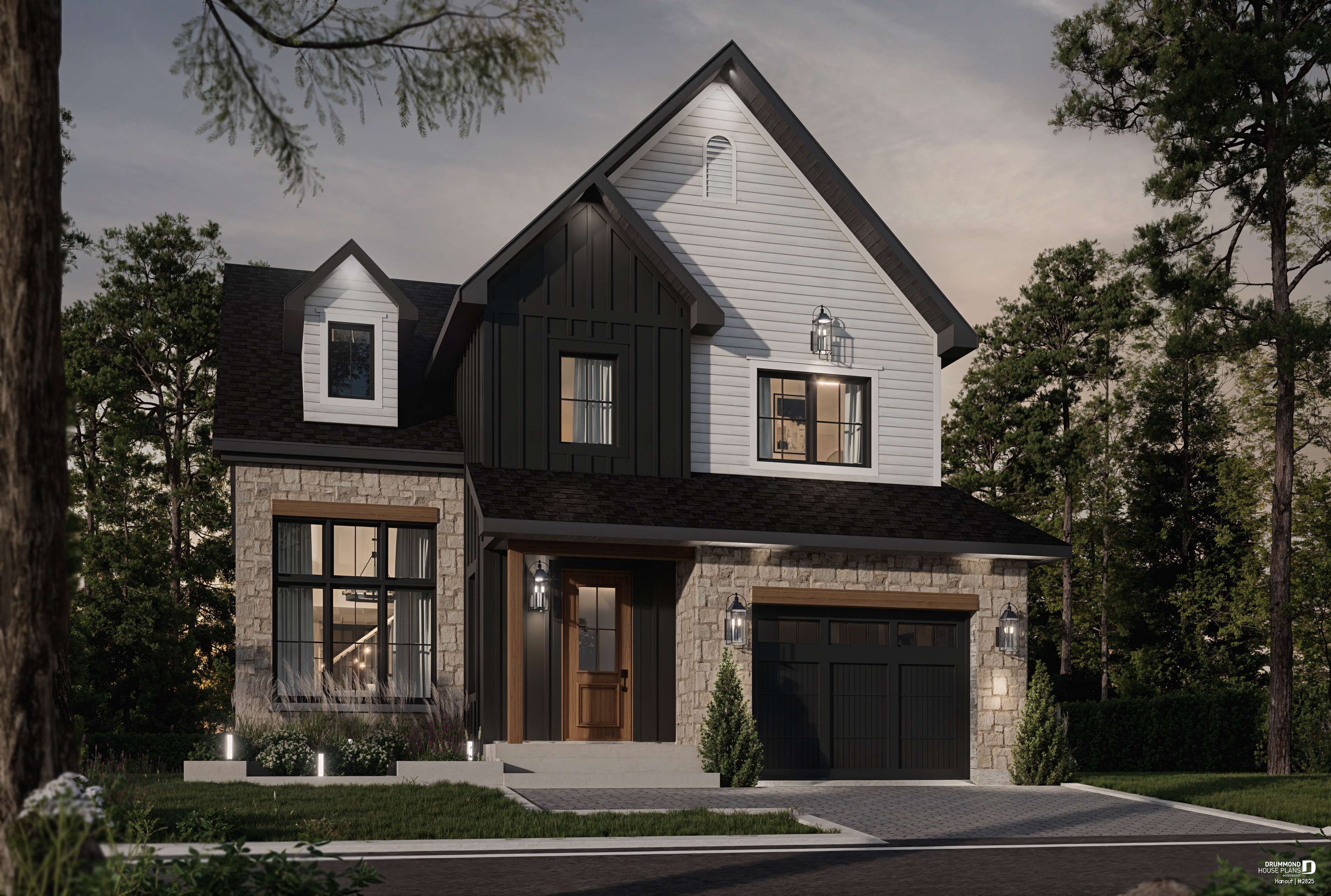 • front - BASE MODEL - 2 storey house plan with cathedral ceiling in living room - Hanout