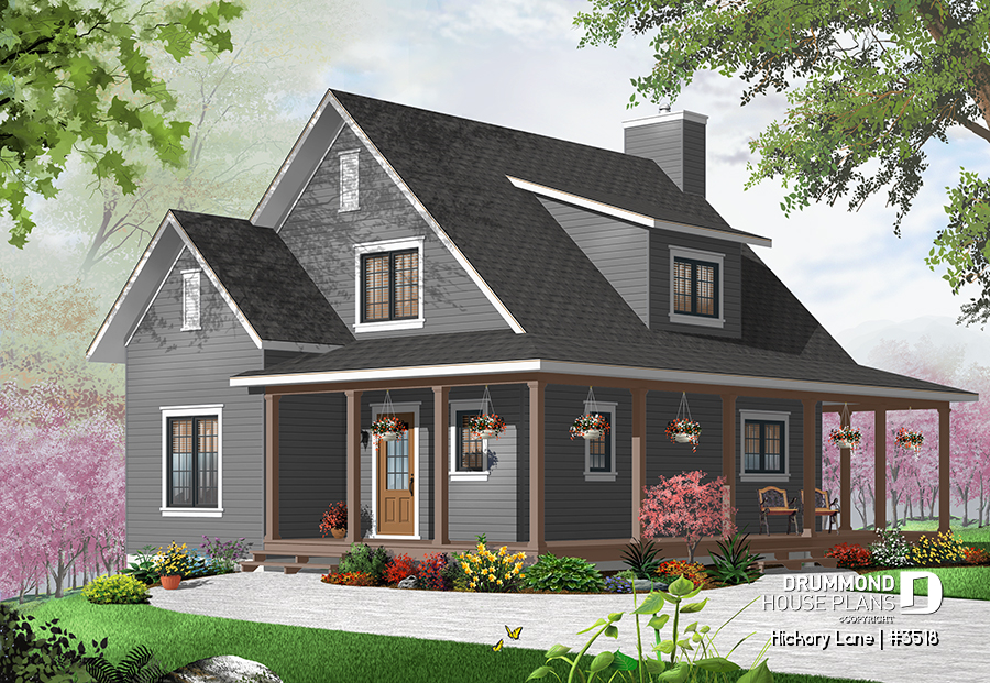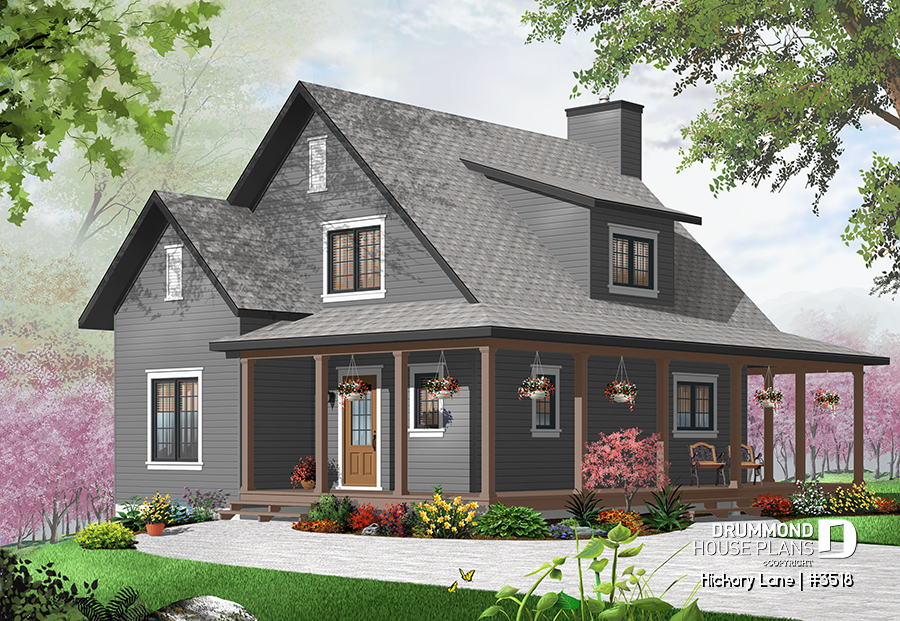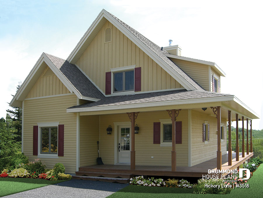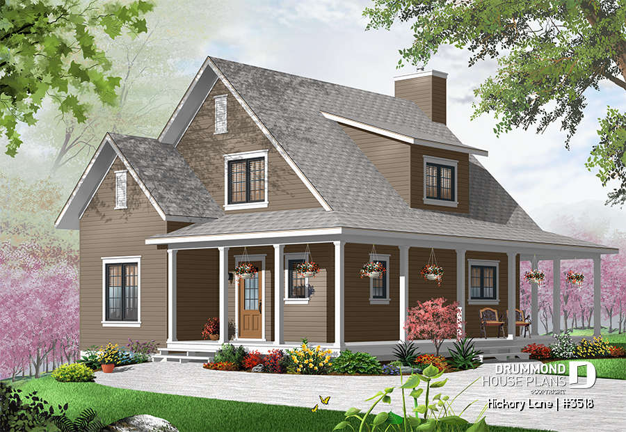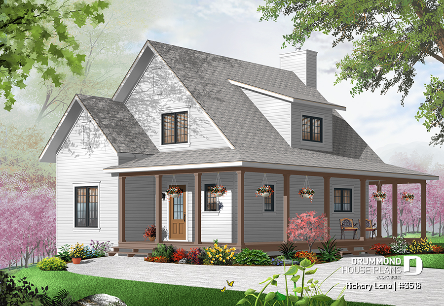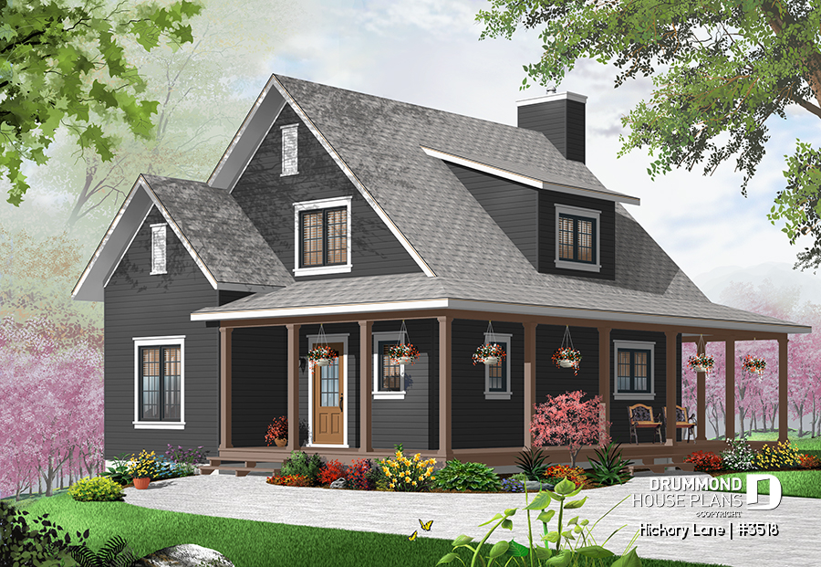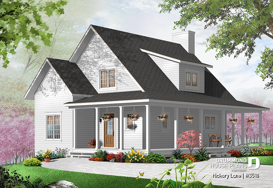 Country Cottage House Plan with 3 Bedrooms, Wraparound Porch & Cathedral Living Room