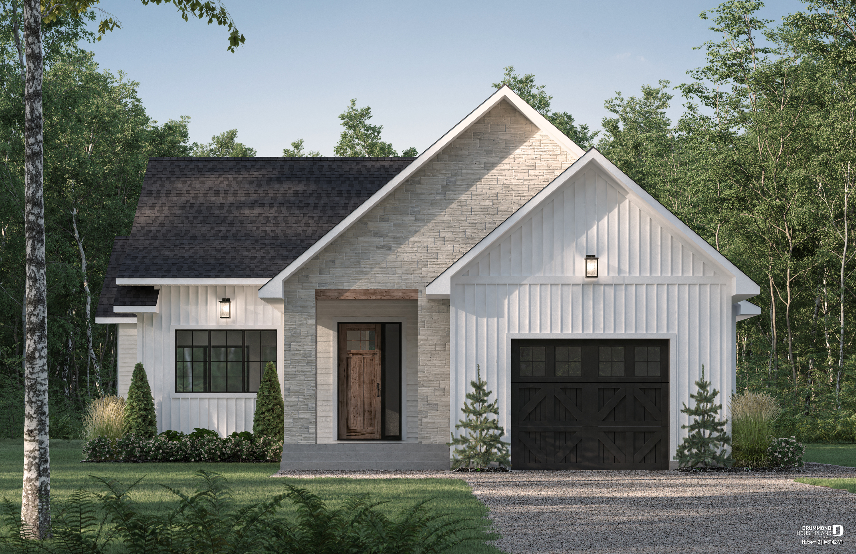 A smaller version of the HUBERT plan (#3142), now featuring an added garage for greater convenience.