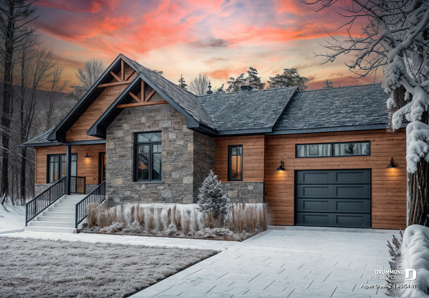 • front - BASE MODEL - 2 bedroom bungalow with garage, mud room, laundry room on main and open floor plan - Aspen Creek 2