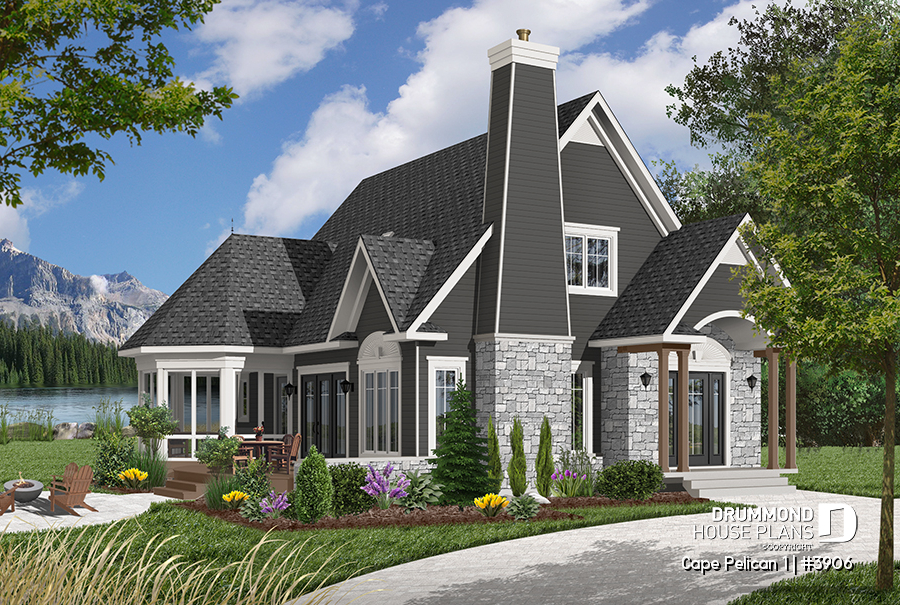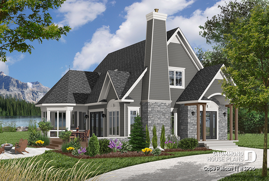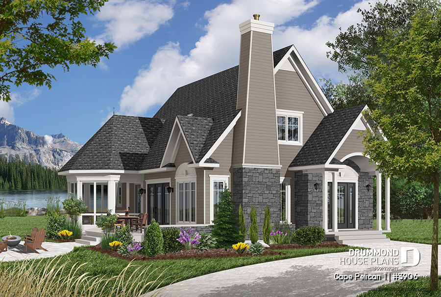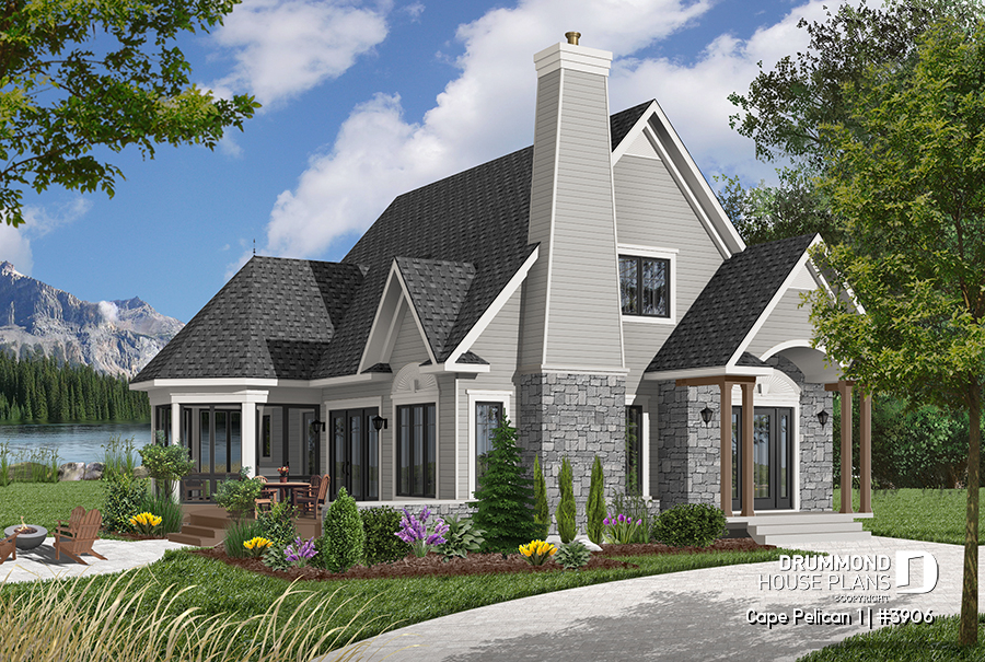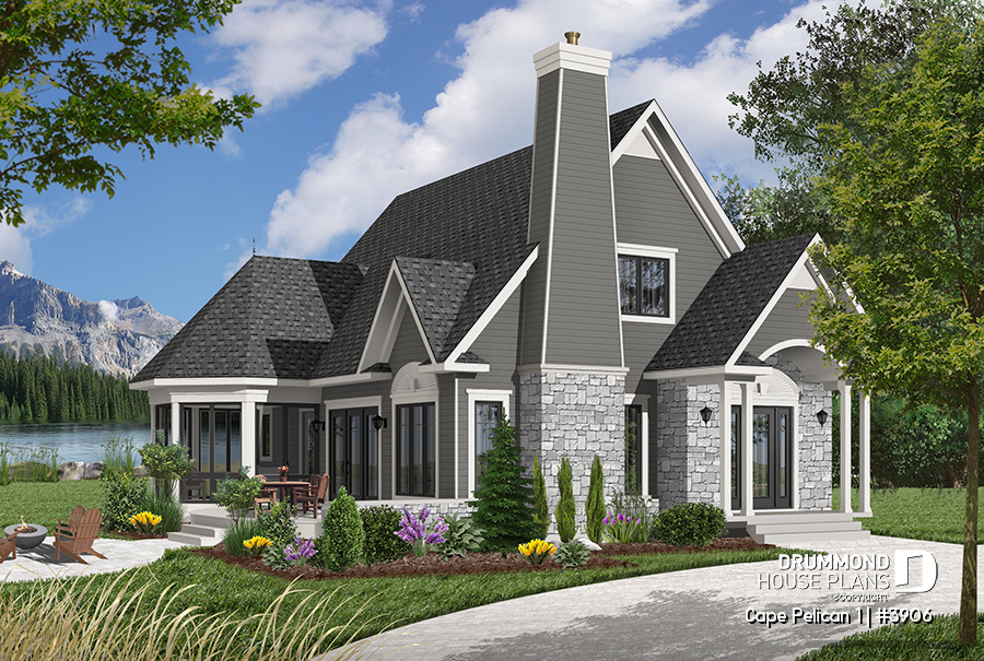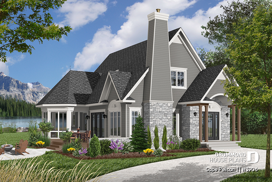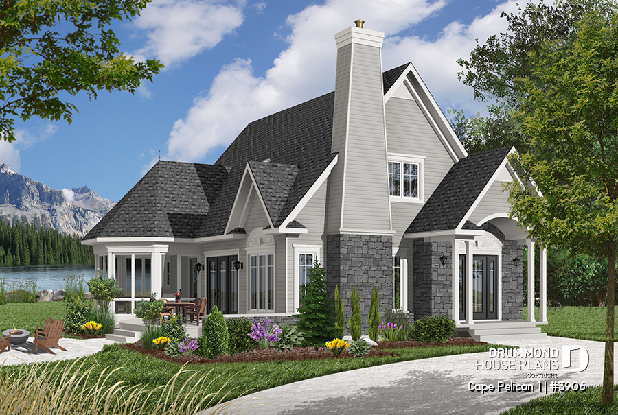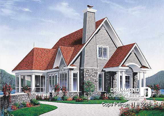 4-season cottage style houseplan, 3 bedrooms, 2 bathrooms, fireplace