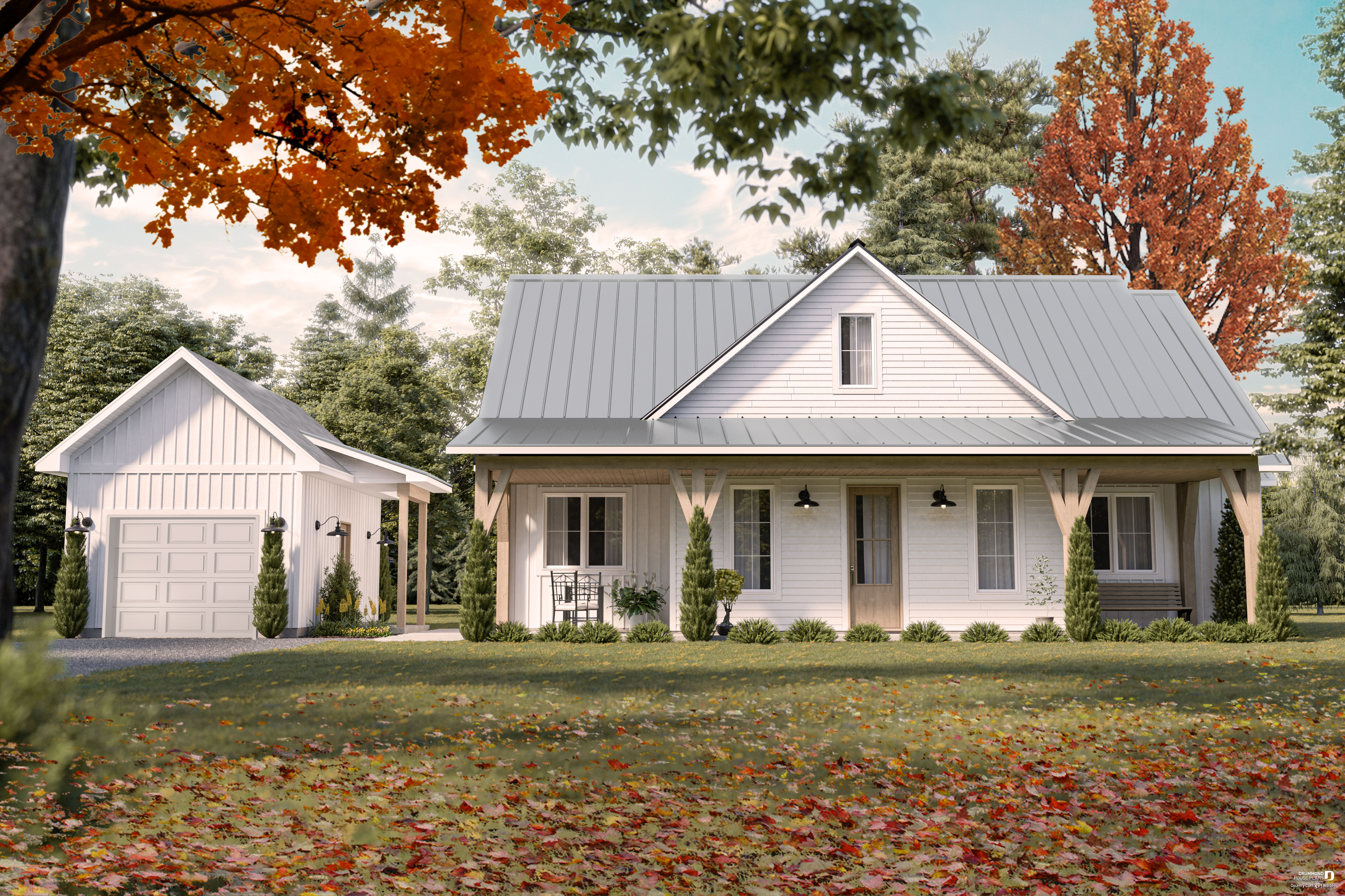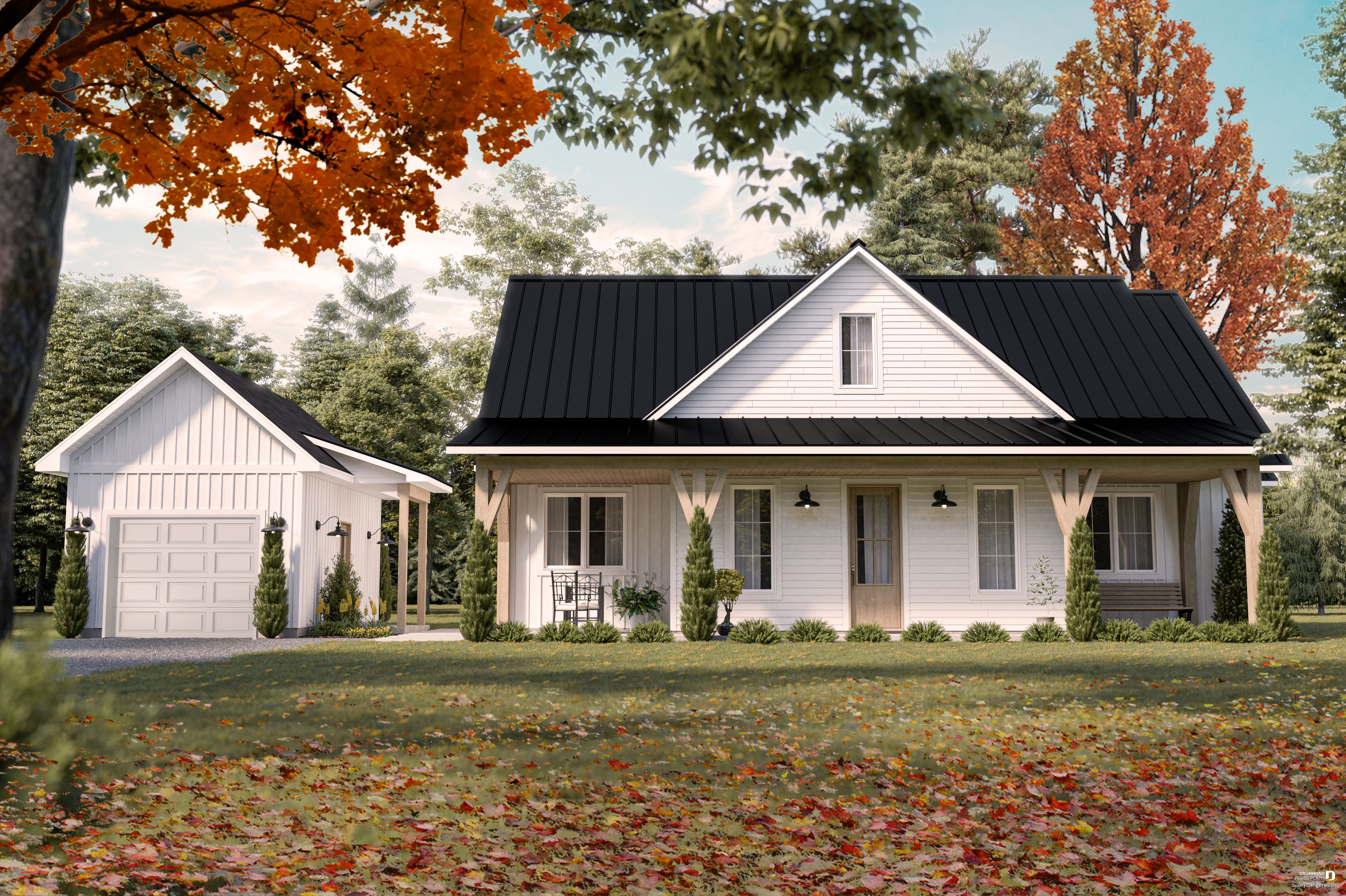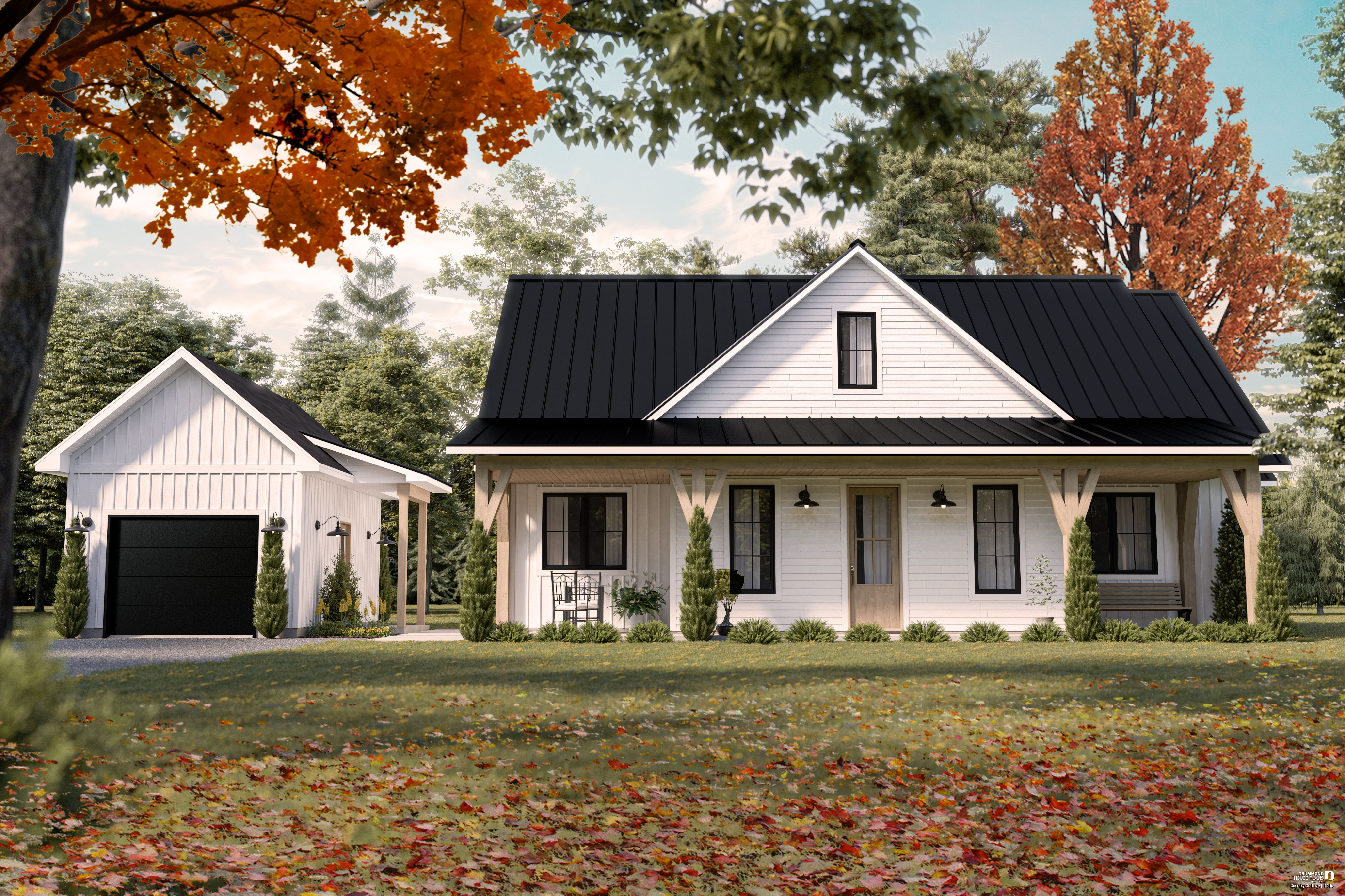 Single storey Farmhouse plan with large covered front porch and stunning master suite!