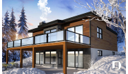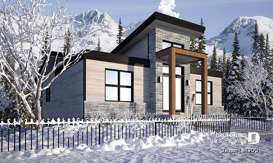 • Color version 1 - Front - Modern Cottage house plan with finished walkout basement, 4 beds, 3 baths, large rear terrace, 2 fireplaces - Gleason
