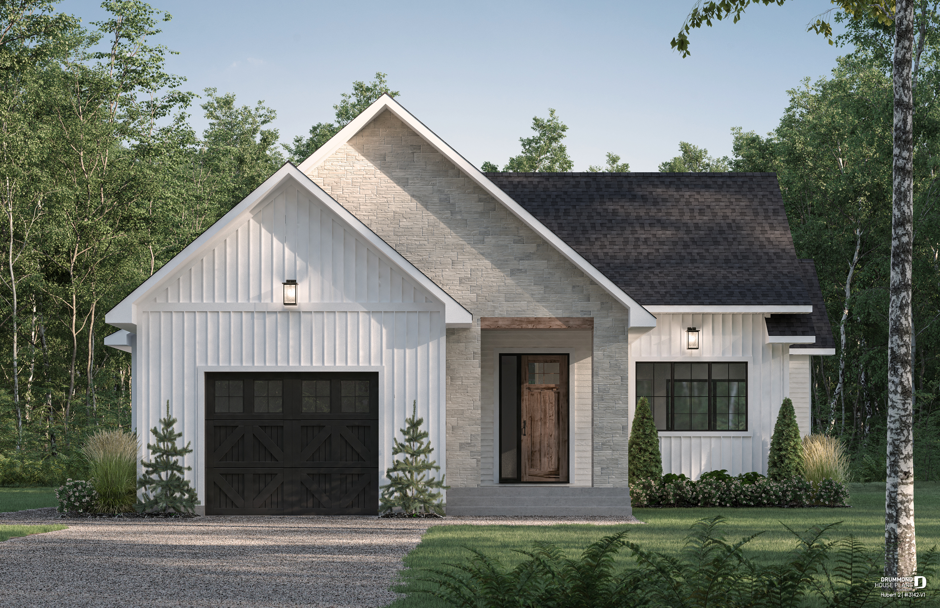 A smaller version of the HUBERT plan (#3142), now featuring an added garage for greater convenience.