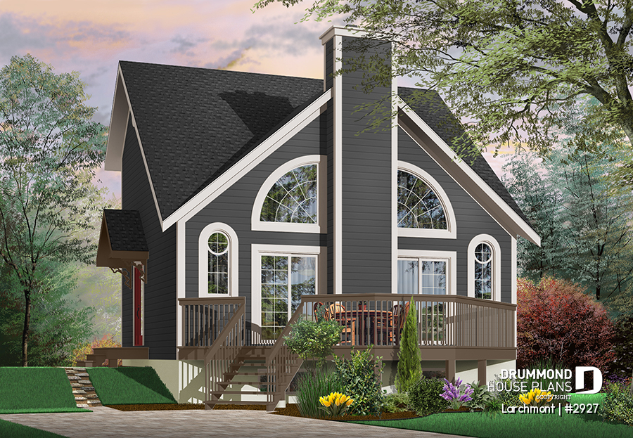 This cost-conscious model is one of the most popular of our chalet collection, with a balanced exterior and original windows, evenly distributed on either side of a central fireplace, and a very open interior.