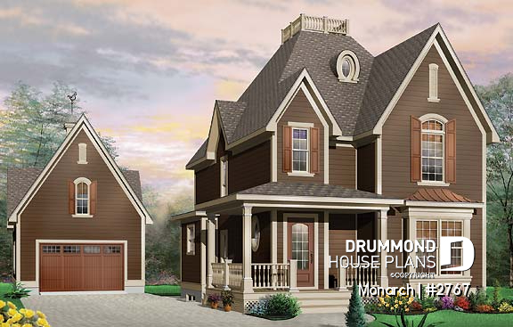 1st level: Entrance, half-bath, family room with fireplace, dining room, kitchen with island and breakfast area. 2nd level: Master bedroom with walk-in and private half-bath, 2 secondary bedrooms, bathroom. Unfinished basement. Other foundation options available. *Garage plan #2984 not included.