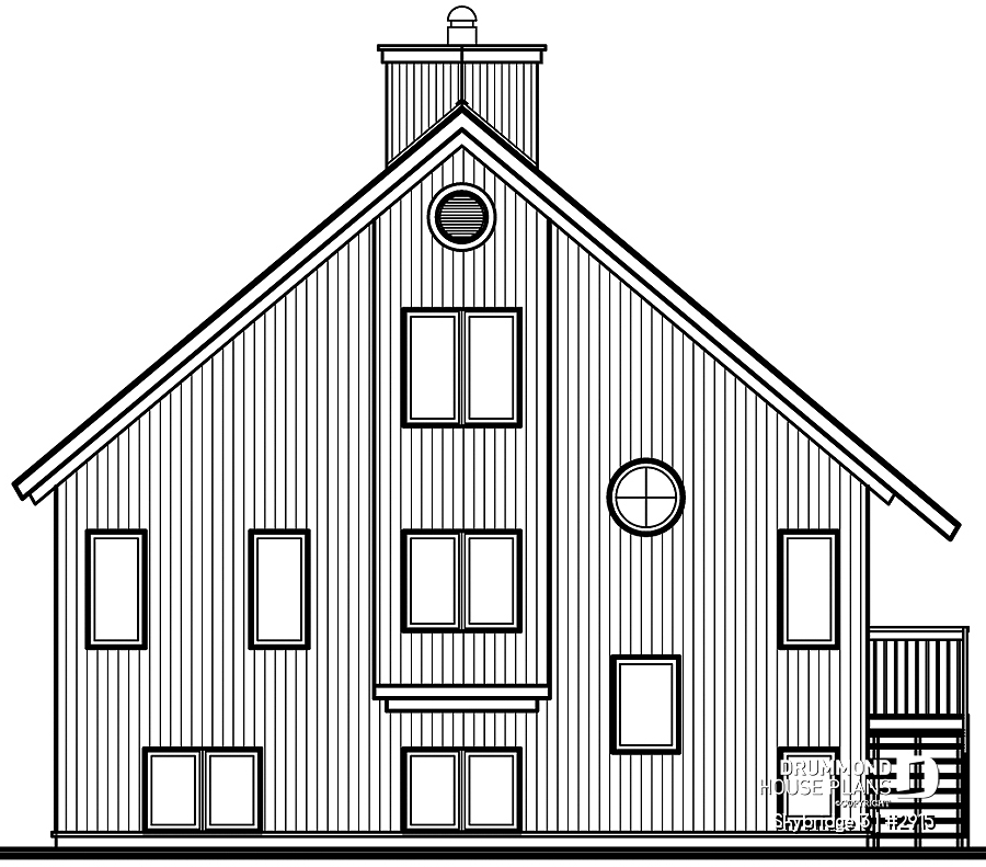 Outdoor living is equally well considered, with a **large patio and balcony on two sides of the home**, ideal for enjoying mountain, forest, or water views in every season. With its **simple, build-friendly lines**, efficient layout, and warm rustic character, the **SKYRIDGE Chalet House Plan (#2915)** is an excellent choice for those dreaming of a welcoming, durable, and view-oriented chalet retreat in the U.S. market.