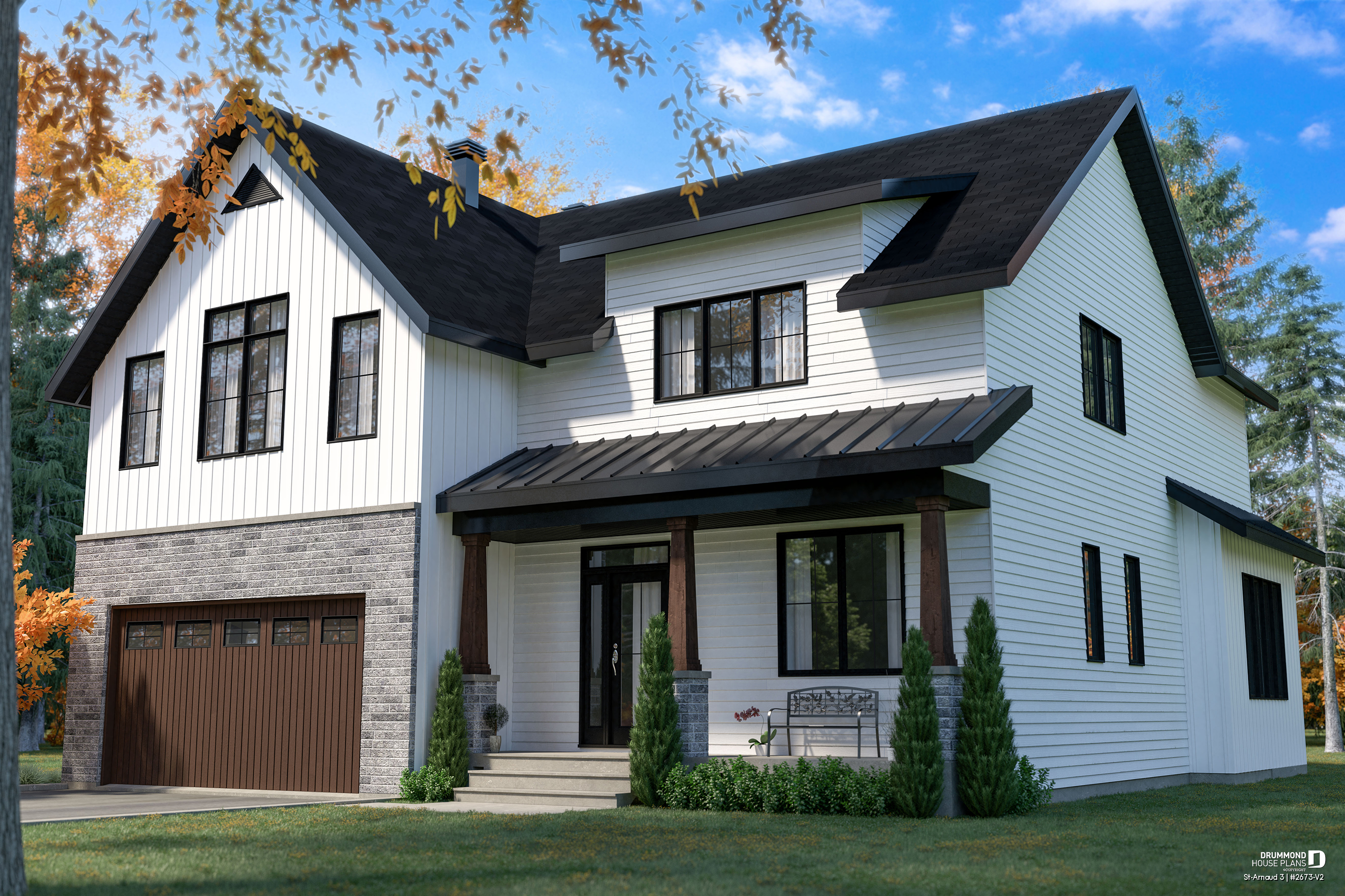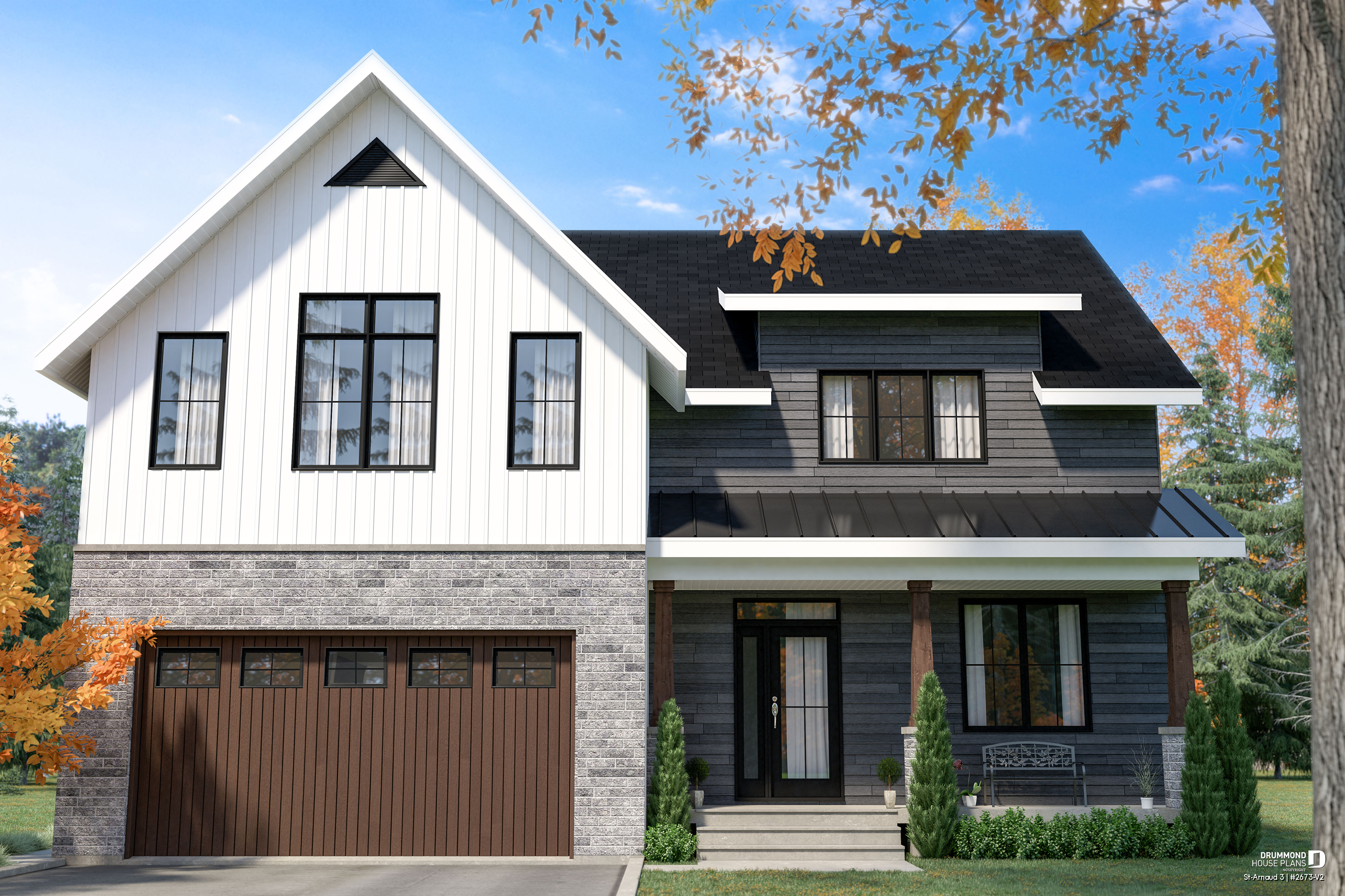 The open mezzanine overlooking the family room enhances the volume and brightness of the space. A double garage provides direct, convenient access to the home. Finally, an unfinished basement and several foundation options allow you to adapt this plan to your lifestyle and your lot.