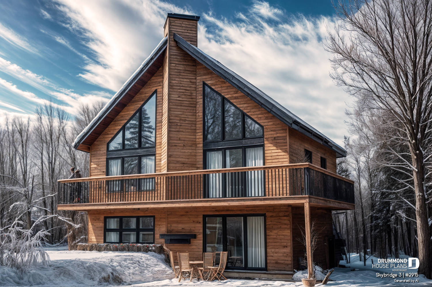The **SKYRIDGE Chalet House Plan (#2915)** is a rustic yet highly functional design created for families seeking a **spacious, affordable, and panoramic chalet-style home**. Developed in response to the strong popularity of a previous chalet model, this plan builds on proven features while offering enhanced comfort, flexibility, and timeless appeal—making it a favorite among buyers looking for a true mountain or lakeside retreat.
