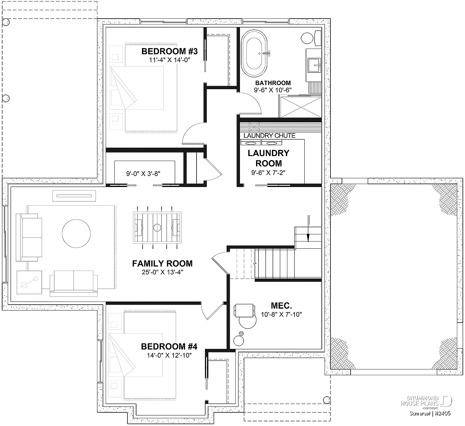 *If you wish to purchase the finished basement plan, as presented on this plan page, please select this option in the shopping cart, in the "Selection of foundation type" section. If you do not select this option, you will receive the unfinished full basement option, at no extra charge