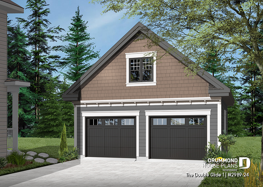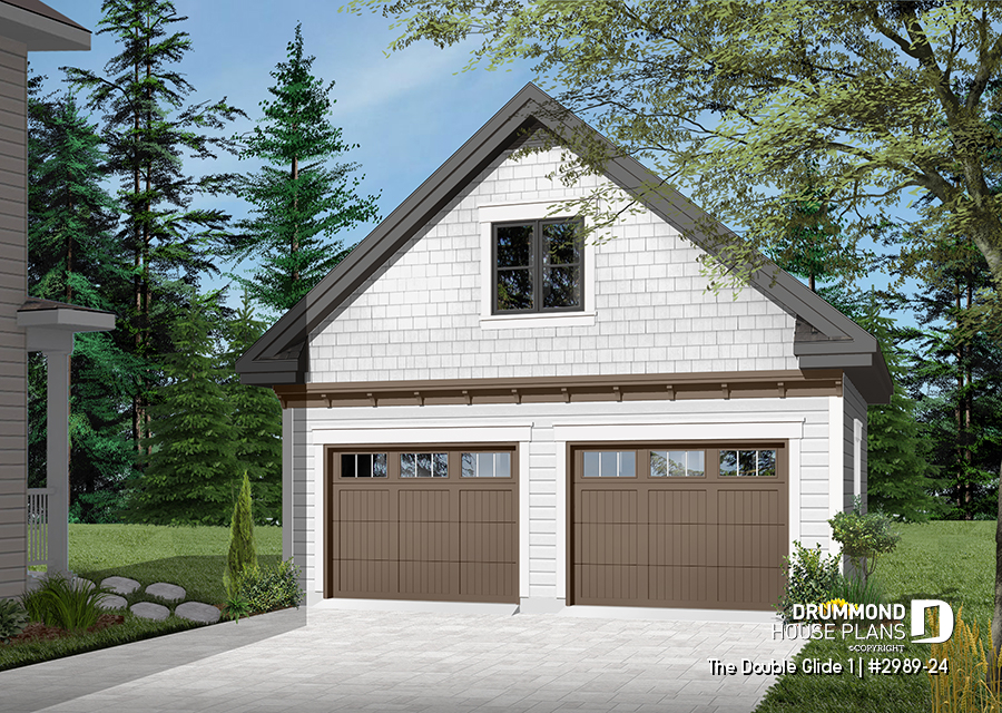 24' x 26' Farmhouse-Style Double Garage Plan with Loft – Timeless Look and Maximum Storage