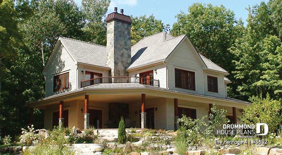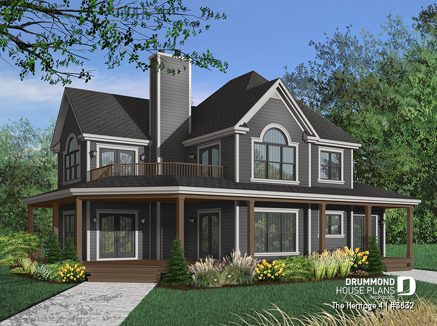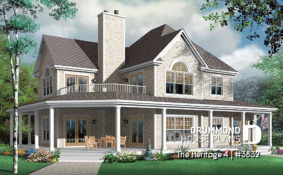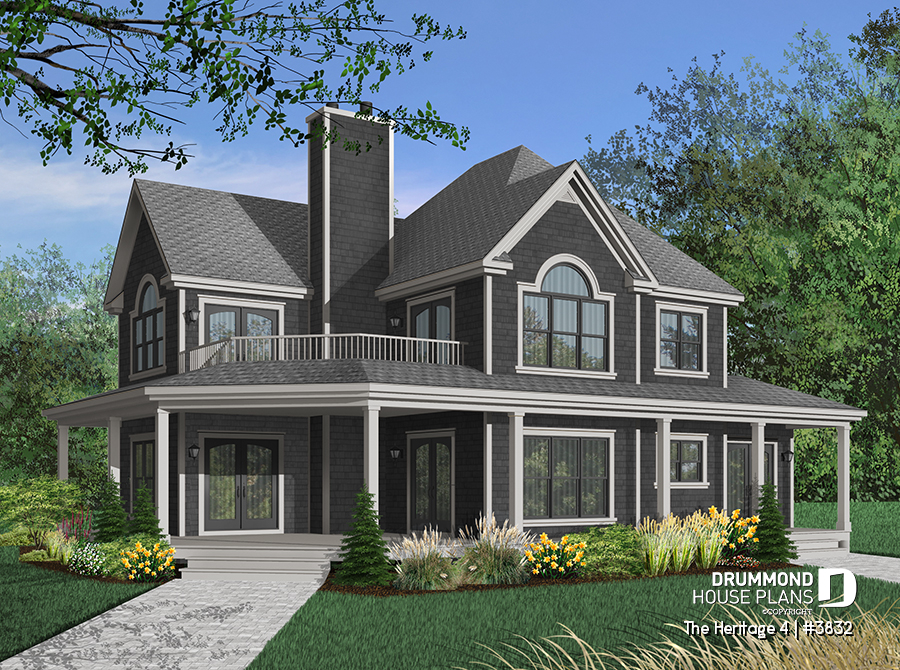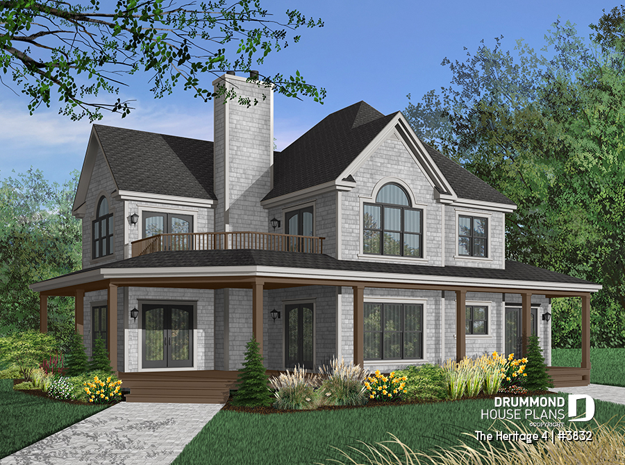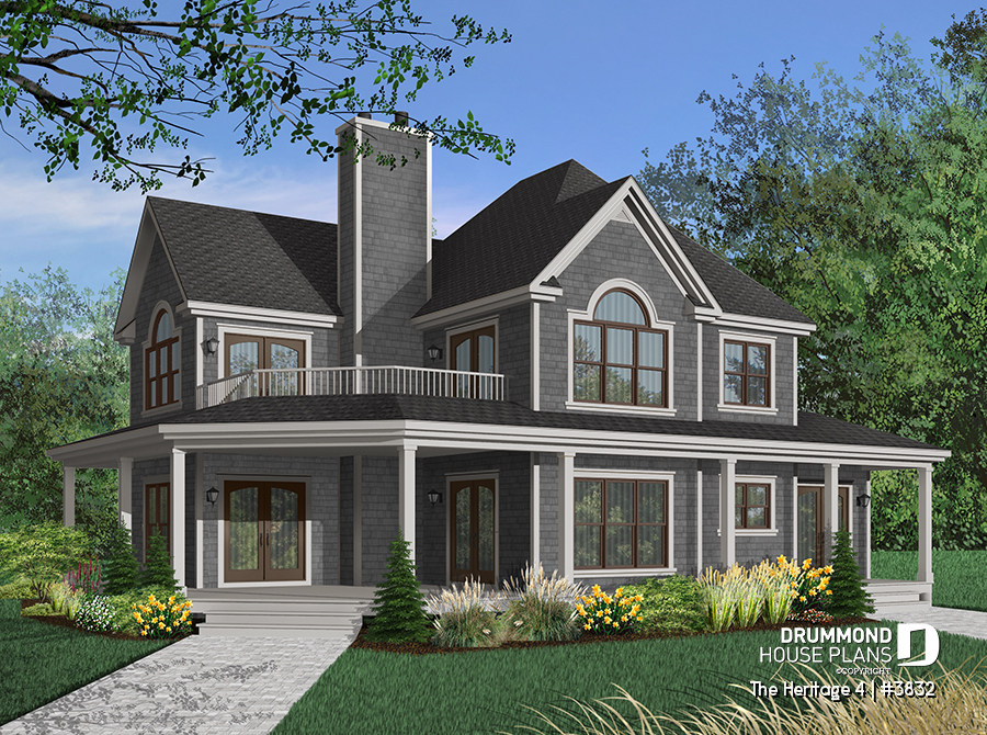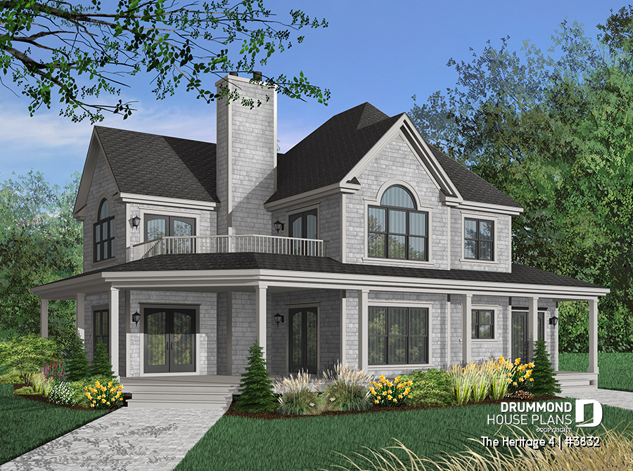 Dual master suites for this 4 bedroom Country home plan with wraparound porch & second floor terrace