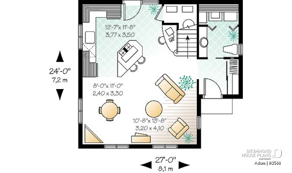 Island, Gound floor laundry room, Open floor layout, Sloped ceiling, Planning desk