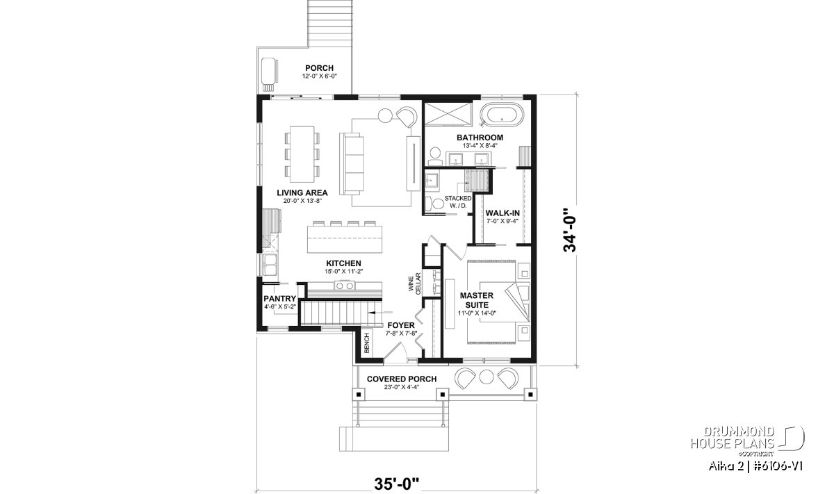 ** An alternate 2-bedroom version of this house plan is also available, see plan no. 6106 for details.