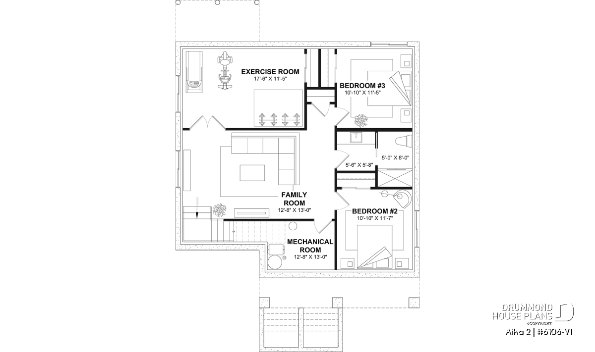 *If you wish to purchase the finished basement plan, as presented on this plan page, please select this option in the shopping cart, in the "Selection of foundation type" section. If you do not select this option, you will receive the unfinished full basement option, at no extra charge.