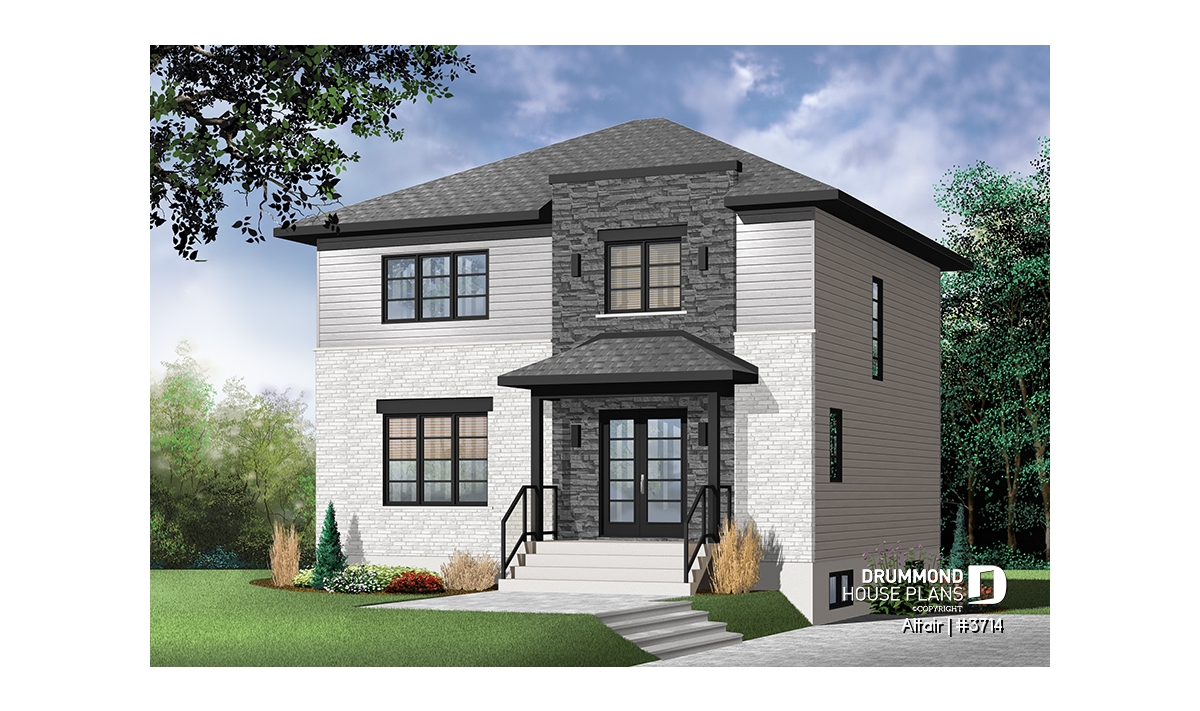A one-car garage version of this house plan is now available, please see plan # 3714-V1 for details or contact us.