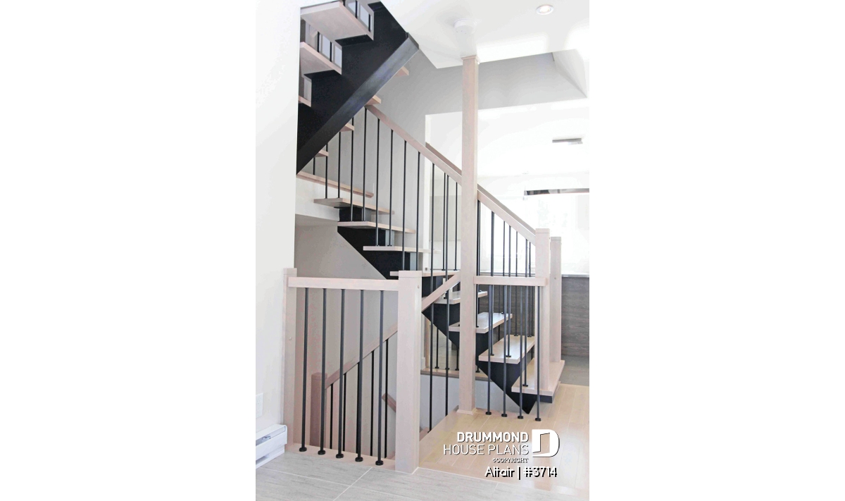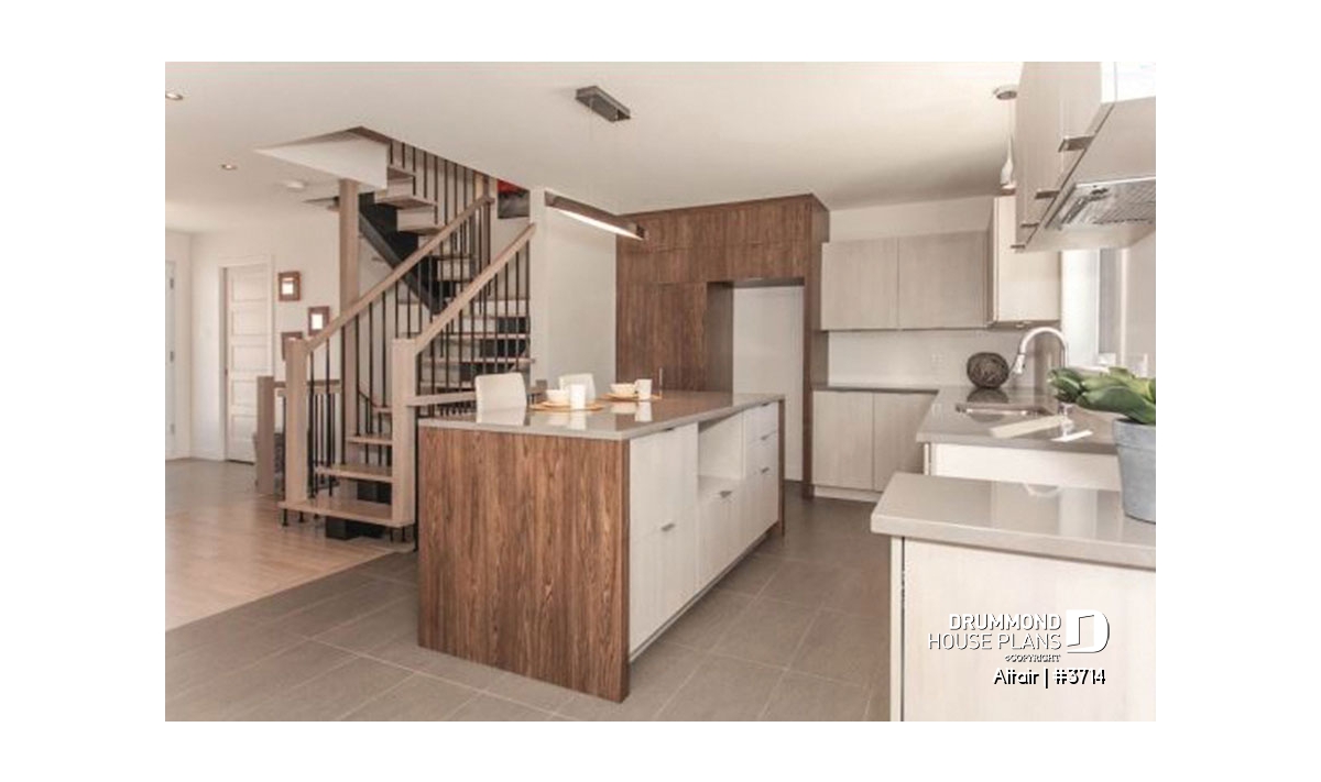 Designed from base plan 2779, with its coveted contemporary interior design, this cottage has an even more ZEN feel from the materials used outside to the opened-up floor plan that admits an abundance of natural light through to the second level from the stairwell.