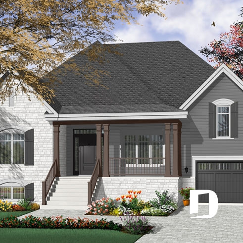 Distinctive exterior with a large covered front porch and a large rear terrace. 9' ceiling throughout the main level. Kitchen with island and central lunch counter, integrated storage on the lateral left side and open view to the rear. Open living room to the kitchen and to the rear with two garden duo doors on each side of a central fireplace for a remarkable interior look. Bonus space above the garage with access from the stairwell. Laundry room located on the garage level.