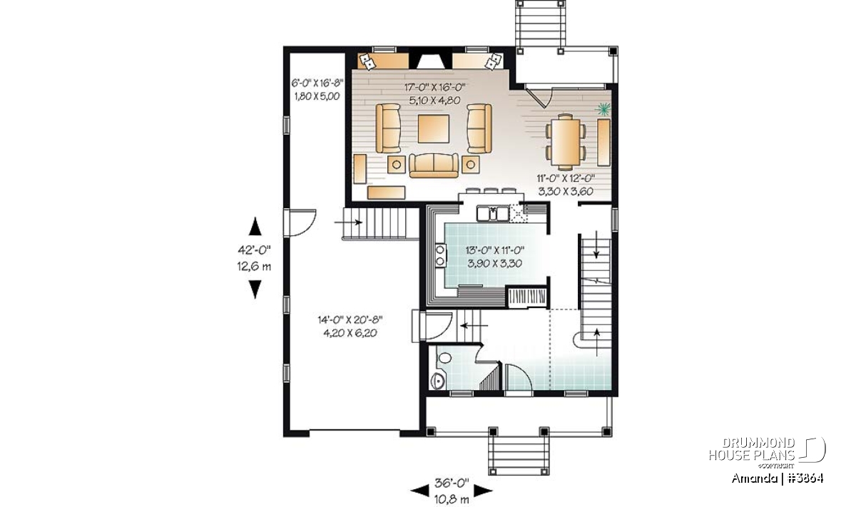 Remarkable entry partially opened on two levels. Kitchen with lunch-counter by way of a dinette. Large living room with central fireplace and benches on each side.