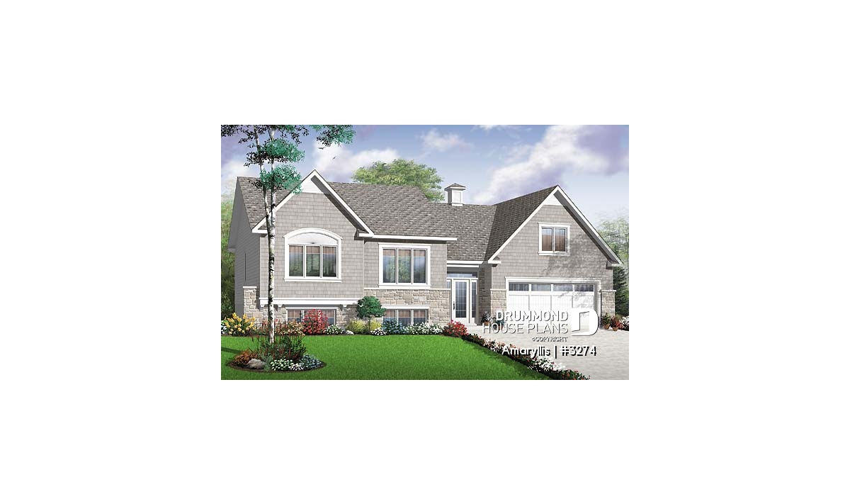 Full of different utilities, one of which is 4 bedrooms, following the example of model no. 3151, this one also proposes an internal layout on two (2) floors with maximal occupation of the half-basement aiming to fulfill the needs of a family looking for a 4-bedroom home, without it necessarily being a two-story building. In the interior we notice the functional organization of the ground floor. First, we notice an entrance landing that is sufficiently large and embellished with an adequate closet, a completely open family room, kitchen with a lunch counter, a computer corner adjoining the dining room, two (2) bedrooms and a complete bathroom. In the half-basement, this excellent organization expresses itself with a family room, two (2) secondary bedrooms whose fenestration is both in compliance with regulations and is remarkable for a half-basement, a laundry/shower room with a large capacity of storage space, as well as a workshop that is joined to the garage with a staircase that has been fitted for this purpose. As a gesture of being the icing on the cake, this model suggests a double garage with the added bonus of having additional storage space on the ground floor and an access to the basement as most home owners have long-desired.