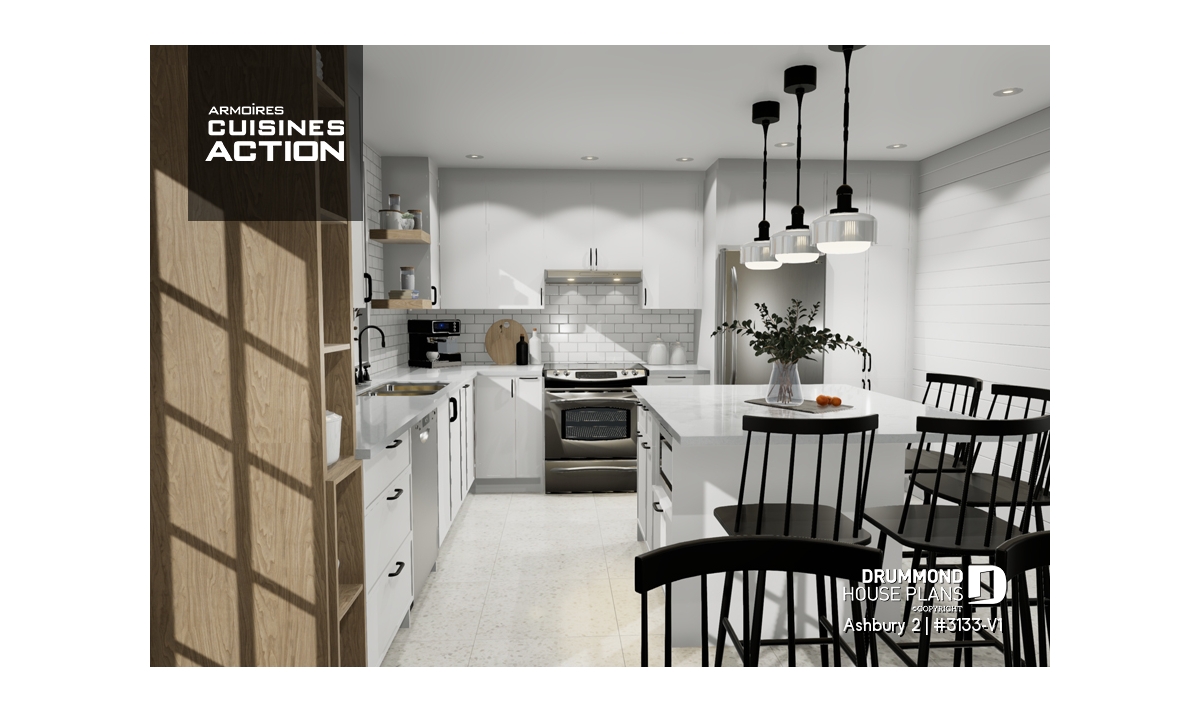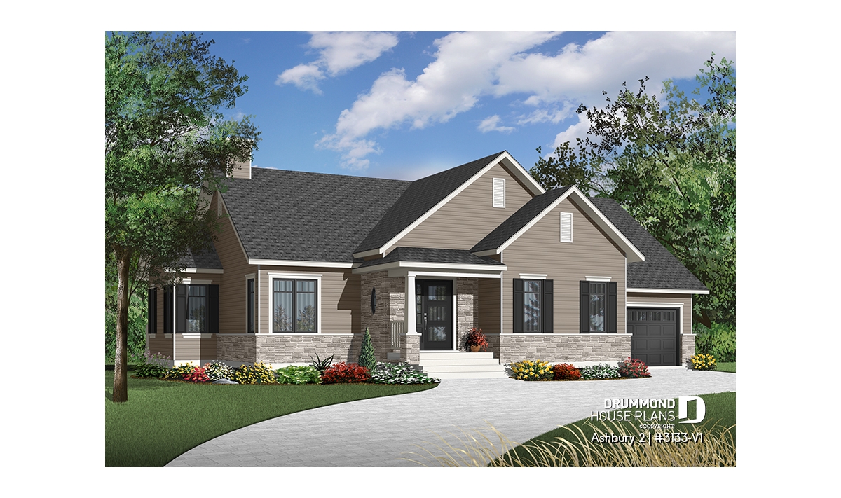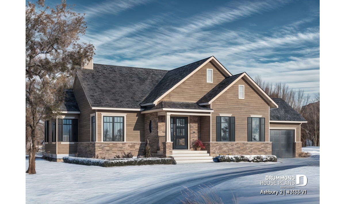 Inspired by the popular plan 3133, this version is particularly suited to those for whom the convenience of having everything on the same level, whether due to advanced age or other considerations, takes precedence over the number of bedrooms required.