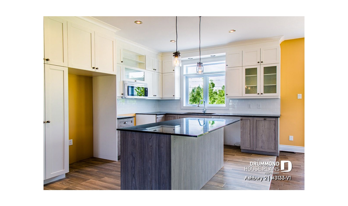 Gound floor laundry room, Fireplace, Island, Basement access from garage, Open floor layout, Separate bath and shower, Double sinks