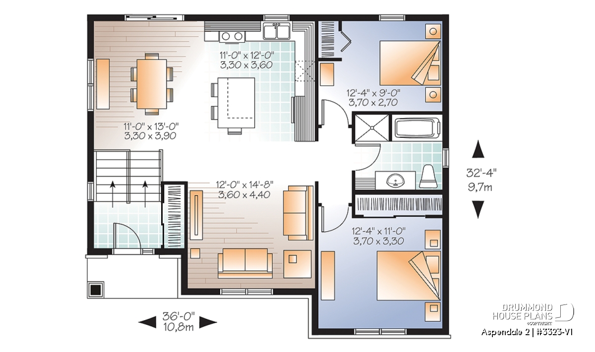 Barely over 1000 sq. ft., this raised bungalow boasts a level entry with 12 ft. ceilings and generous coat closet. An open concept floorplan includes living room, dining room and kitchen with island.