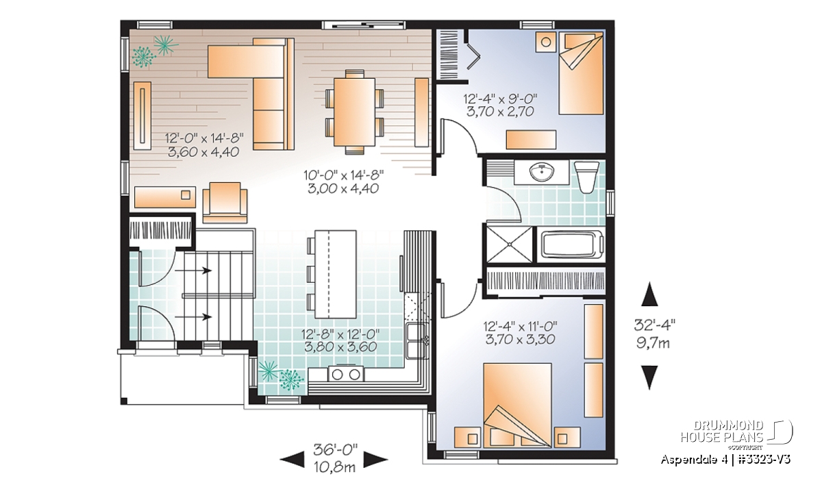 Enjoy this efficient contemporary bungalow designed for living. The ground level entry features a 12 ft. ceiling, generous closet and easy access to the kitchen. The open floor plan flows easily from the island kitchen to the rear-oriented living and dining room with patio access.