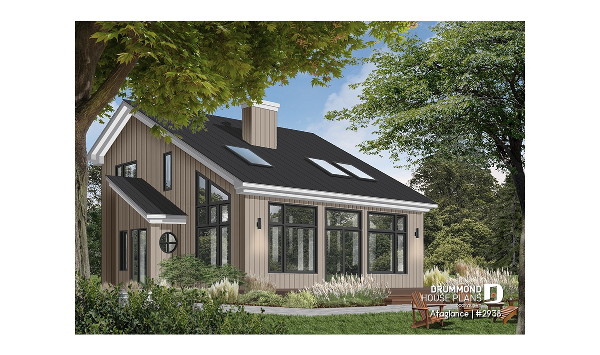 Chalet-style home plan filled with natural light.