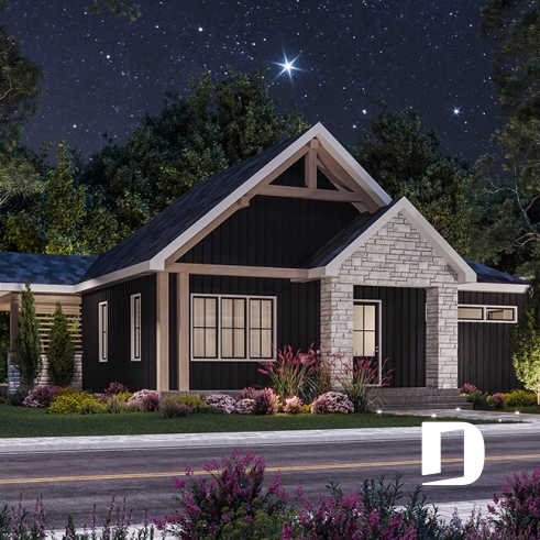 This warm and inviting single-story home instantly captures the eye with its timeless design and beautifully selected materials. Vertical siding, brick accents, and elegant wood gables create a chic modern-farmhouse look, while the covered front porch offers year-round protection and a welcoming first impression.