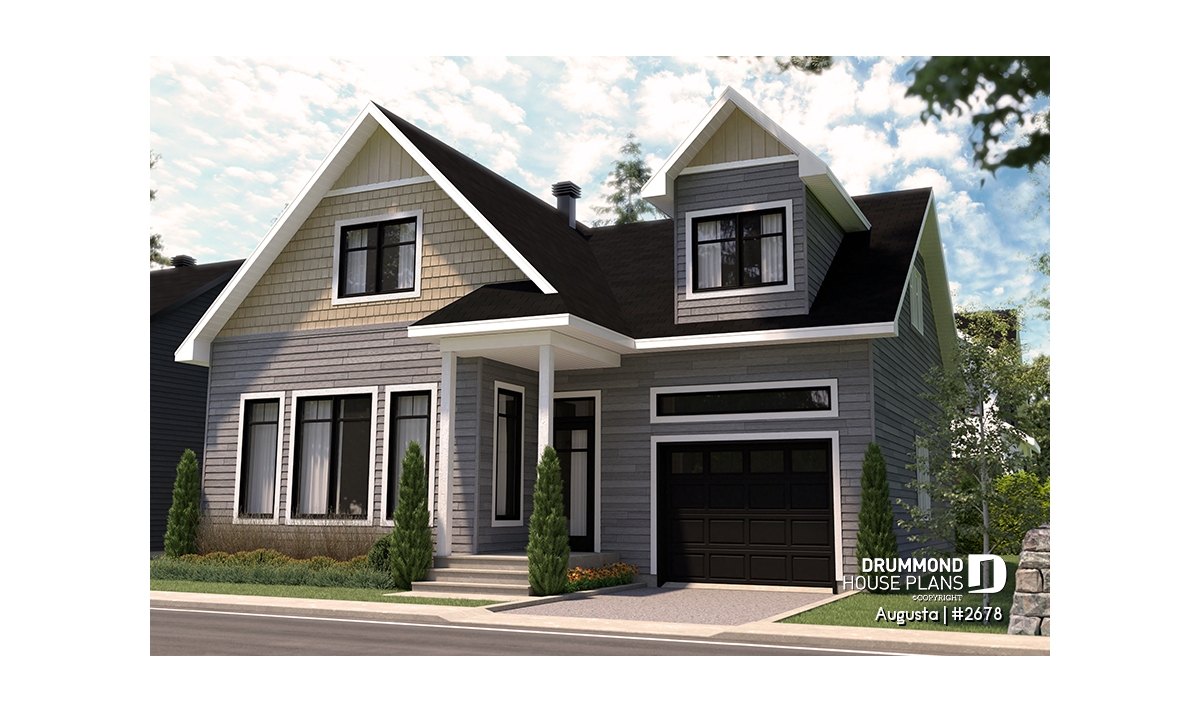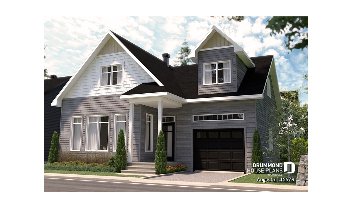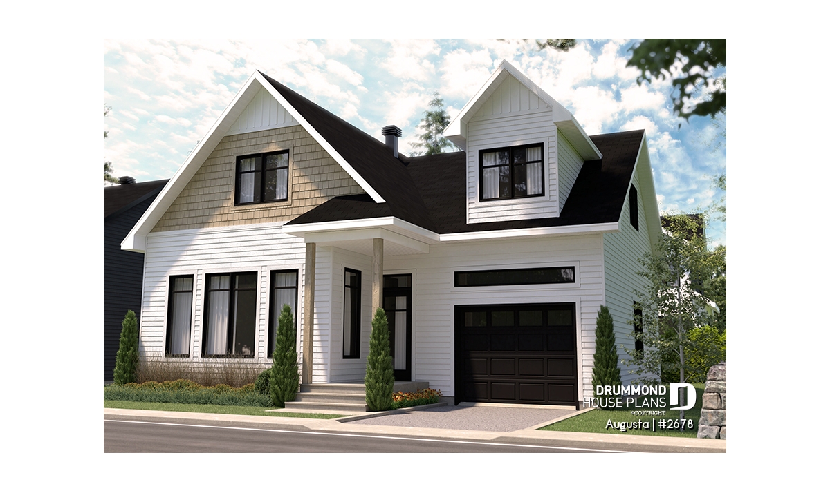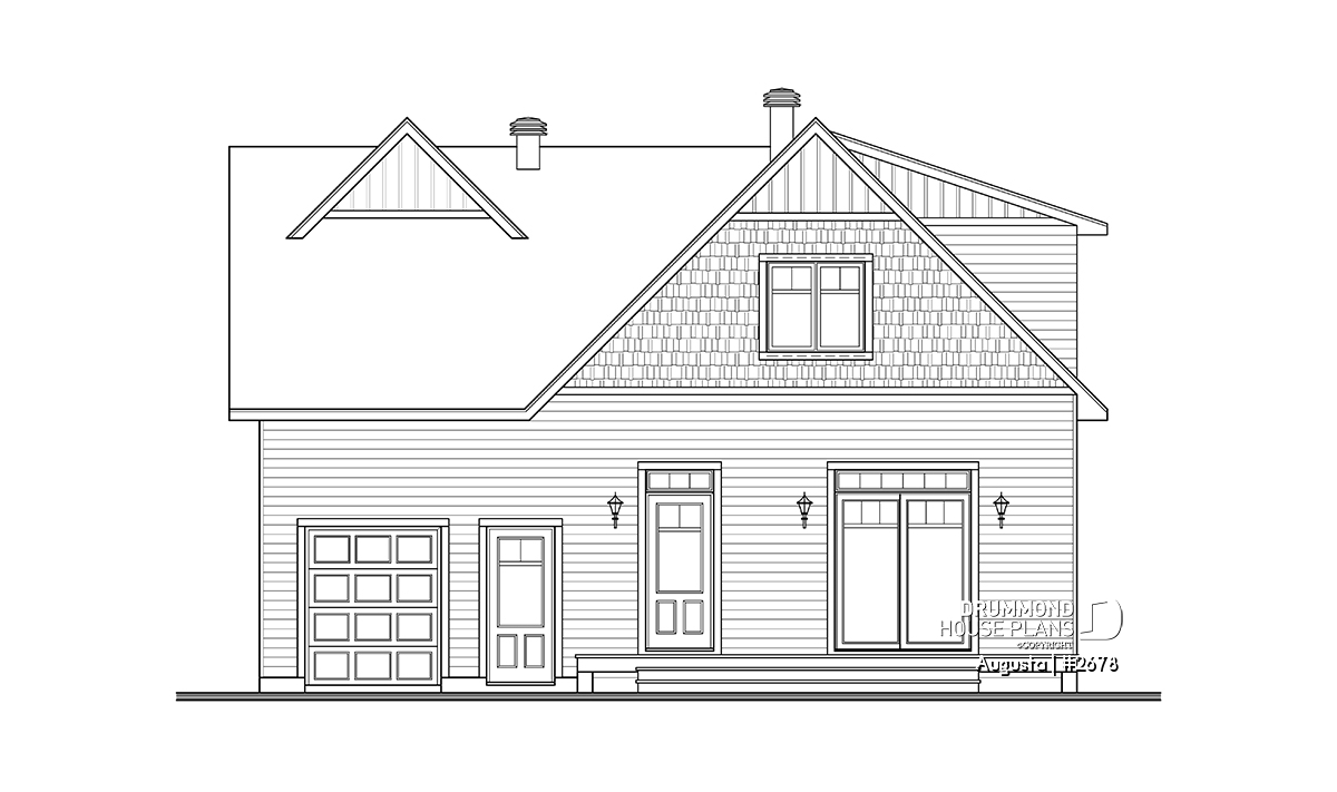 Augusta (house plan # 2678) is a country-style house plan recalling the warm and simple style of the houses found in Maine, in the Cape Cod region.