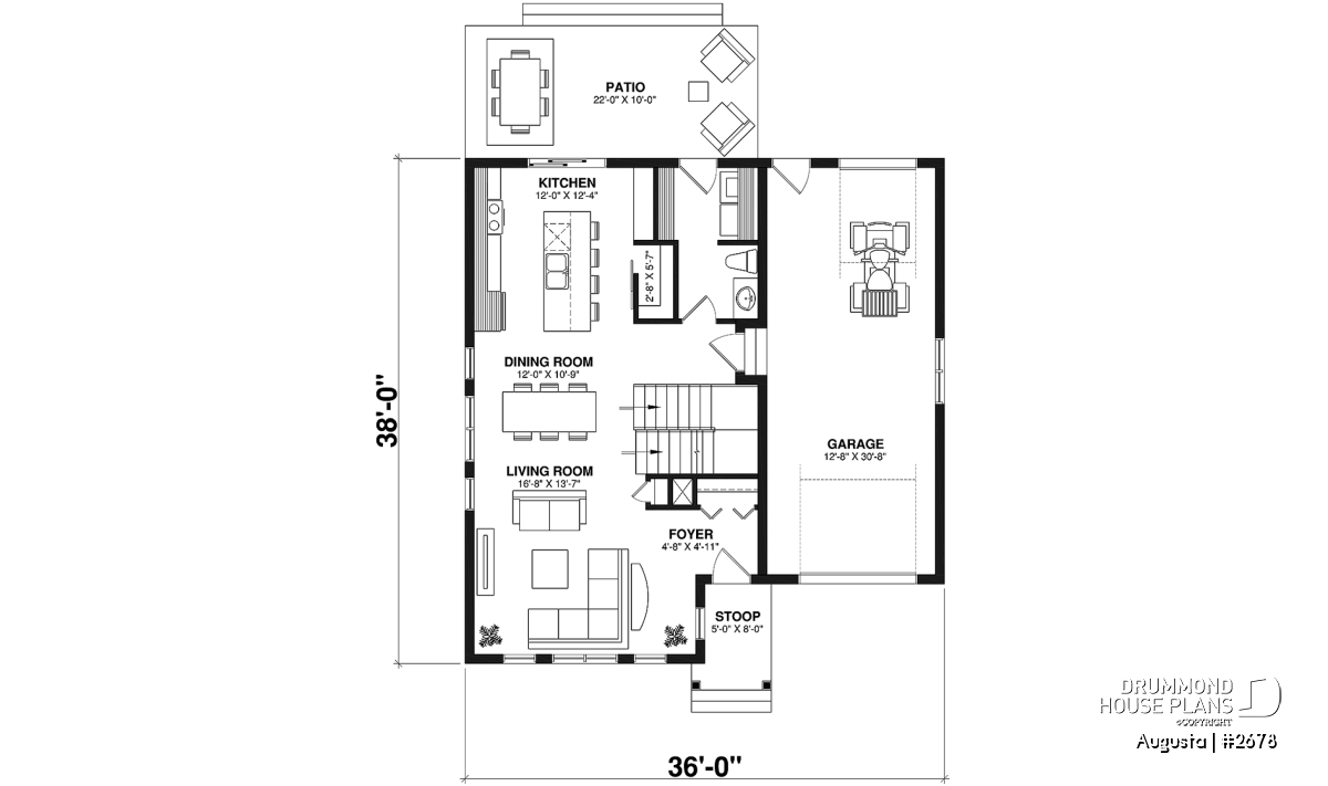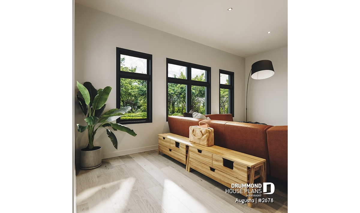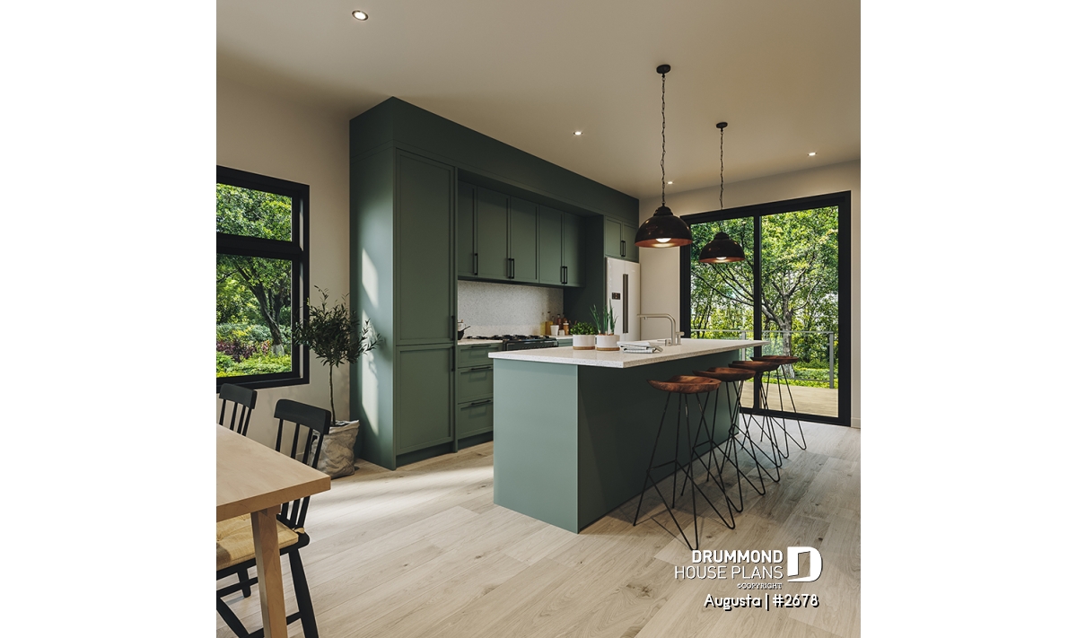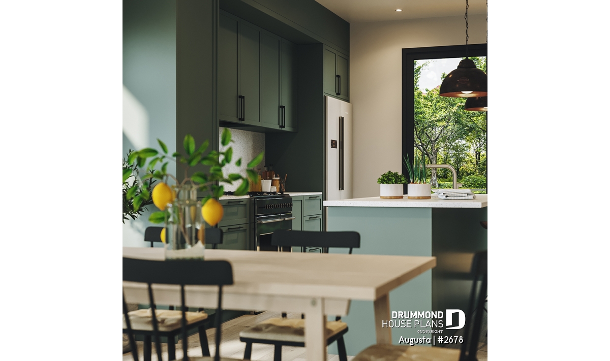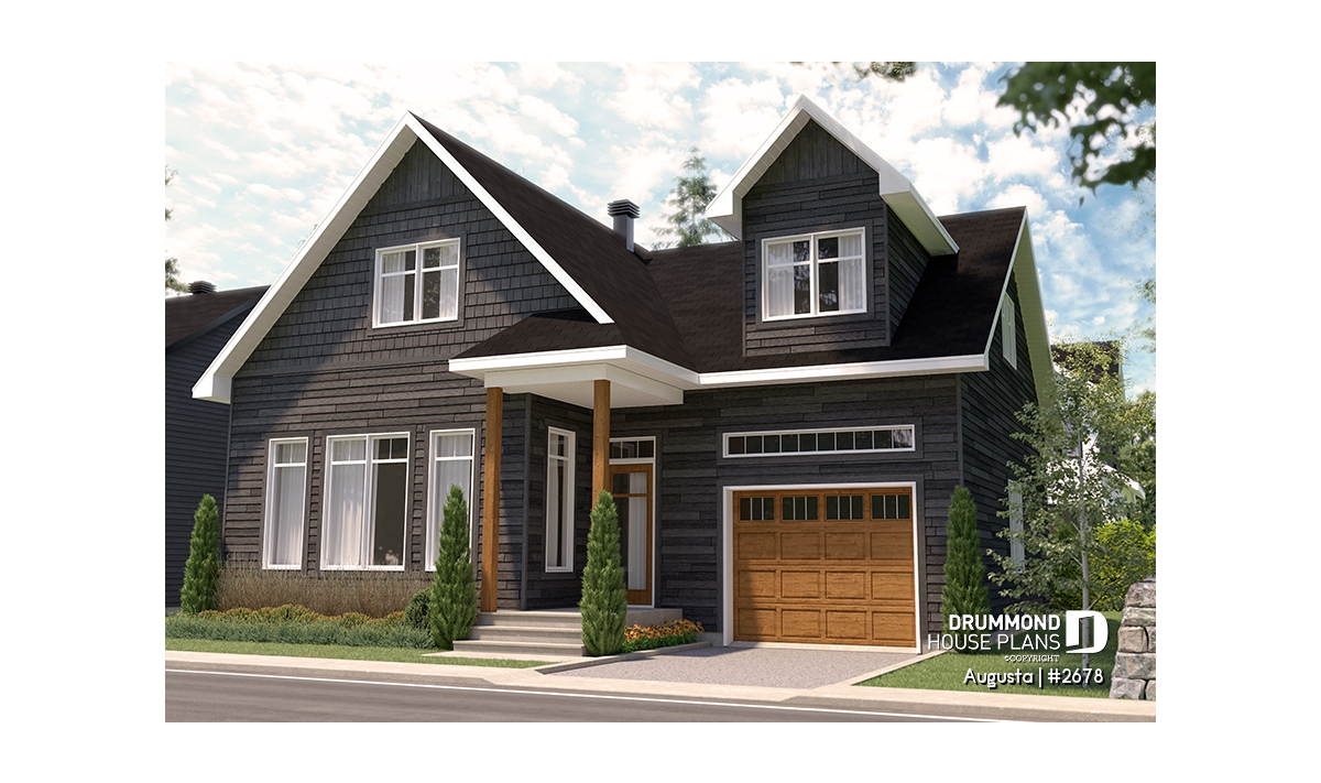 Augusta (house plan # 2678) is a country-style house plan recalling the warm and simple style of the houses found in Maine, in the Cape Cod region.