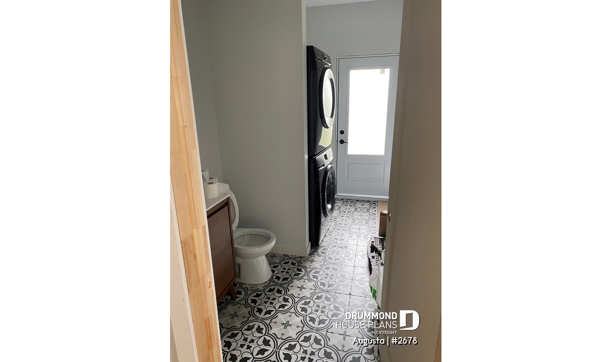 The powder room, which is annexed to the laundry room with direct access to the back patio, will be practical in the summer to minimize travel around the house!
