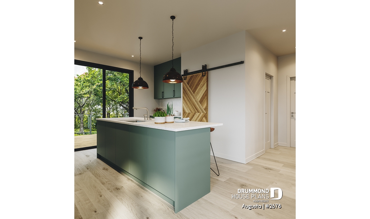 Panoramic view, Pantry, Island, Gound floor laundry room, Narrow lot, Walk-in master bed., Sloped ceiling, Ceiling over 8'