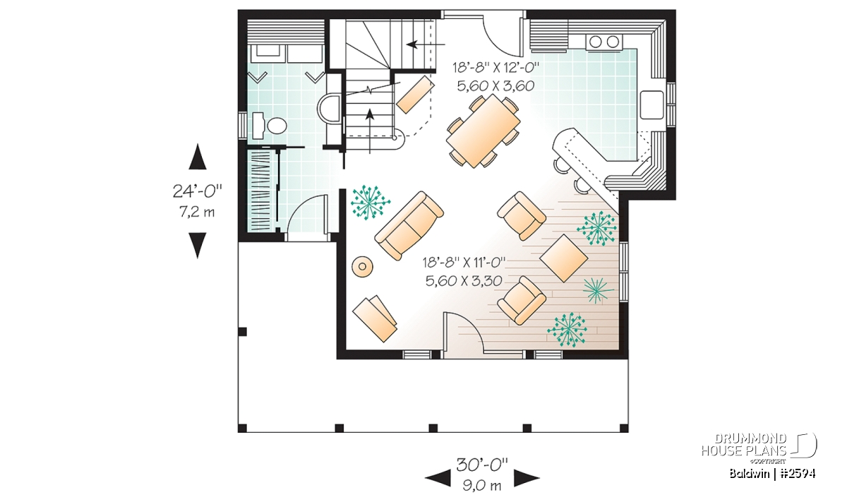 Gound floor laundry room, Sloped ceiling, Lunch counter, Entrance hall, Warparound, Open floor layout