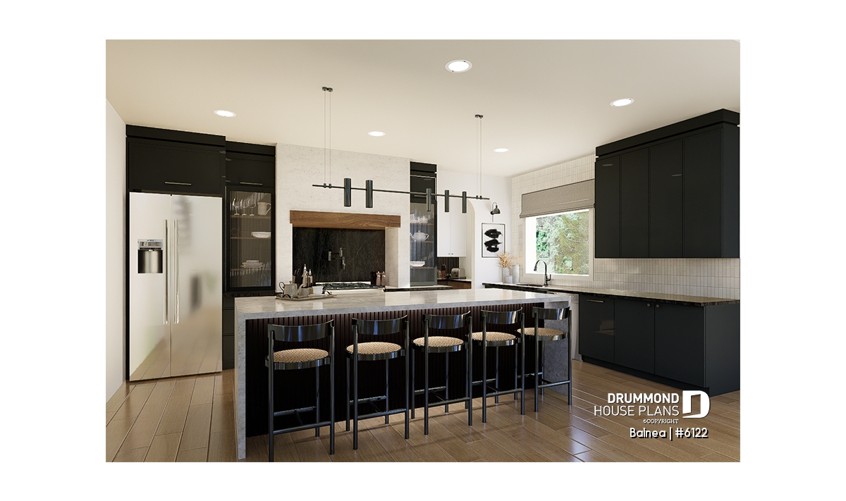Modern kitchen with a large island that includes space for an integrated wine cellar.