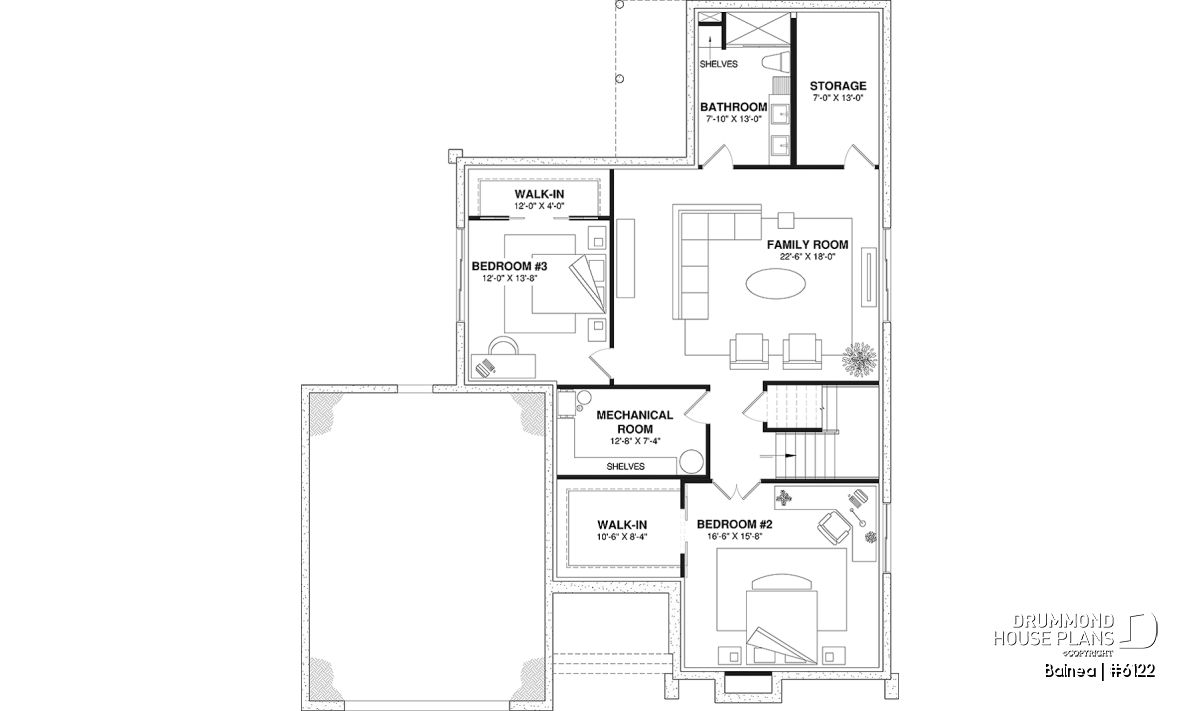 Storage space and mechanical room integrated into the basement for added convenience.
