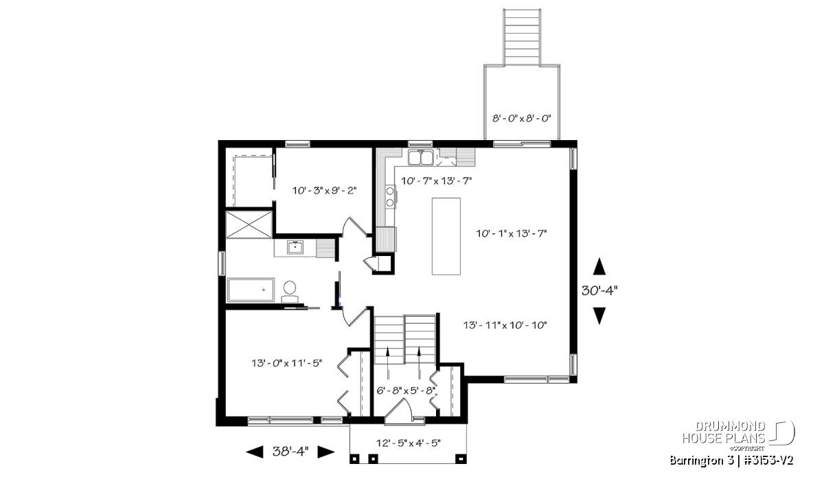 Modern house plan with 2 beds.