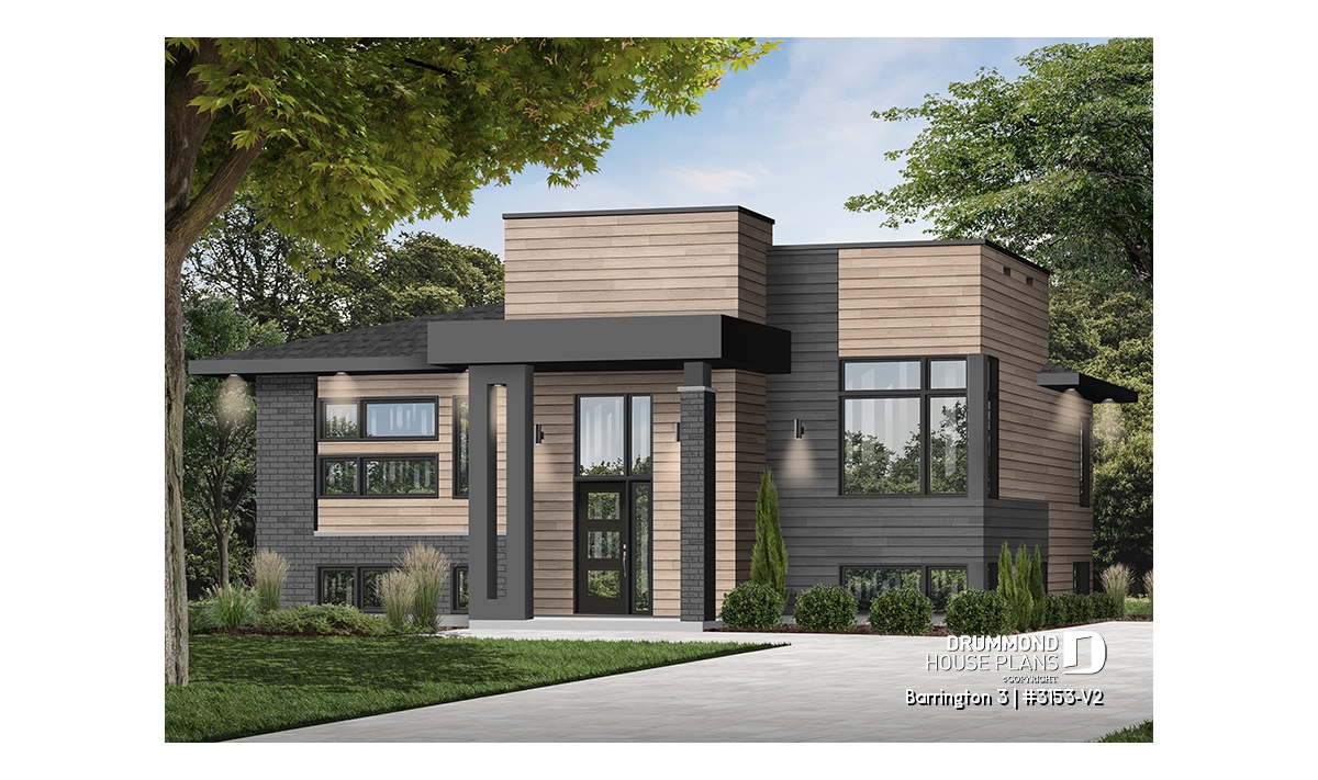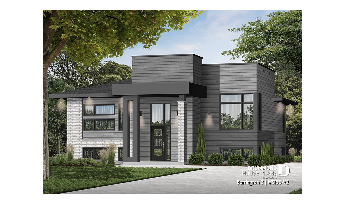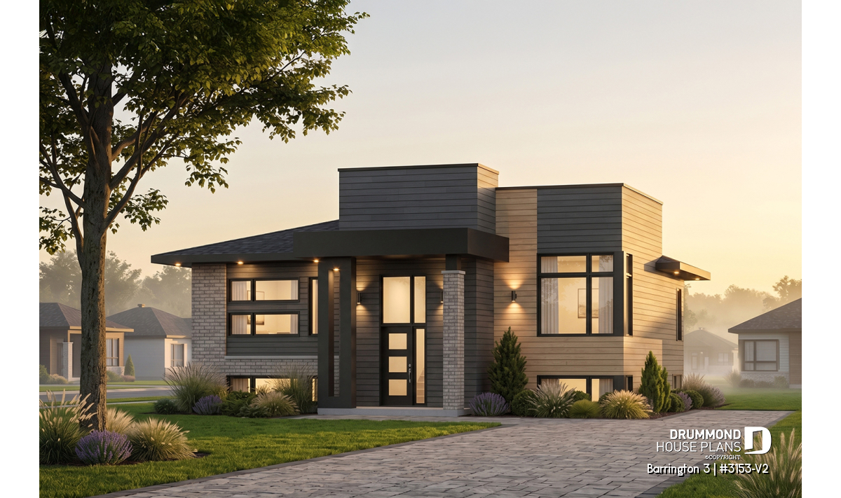 The BARRINGTON 3 plan (Plan #3153-V2) immediately stands out with its sleek modern cubic design and smart layout — perfectly tailored for today’s families. With 1,094 sq. ft. of fully finished space on the main level and an unfinished basement of equal size ready to be customized, this home offers all the room you need to grow and adapt to your lifestyle.