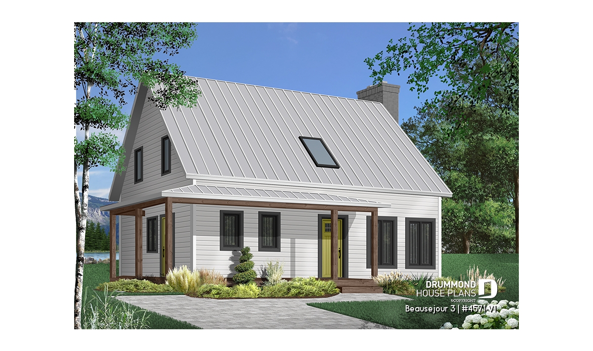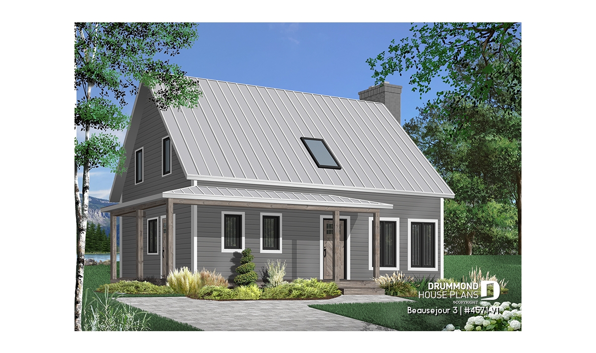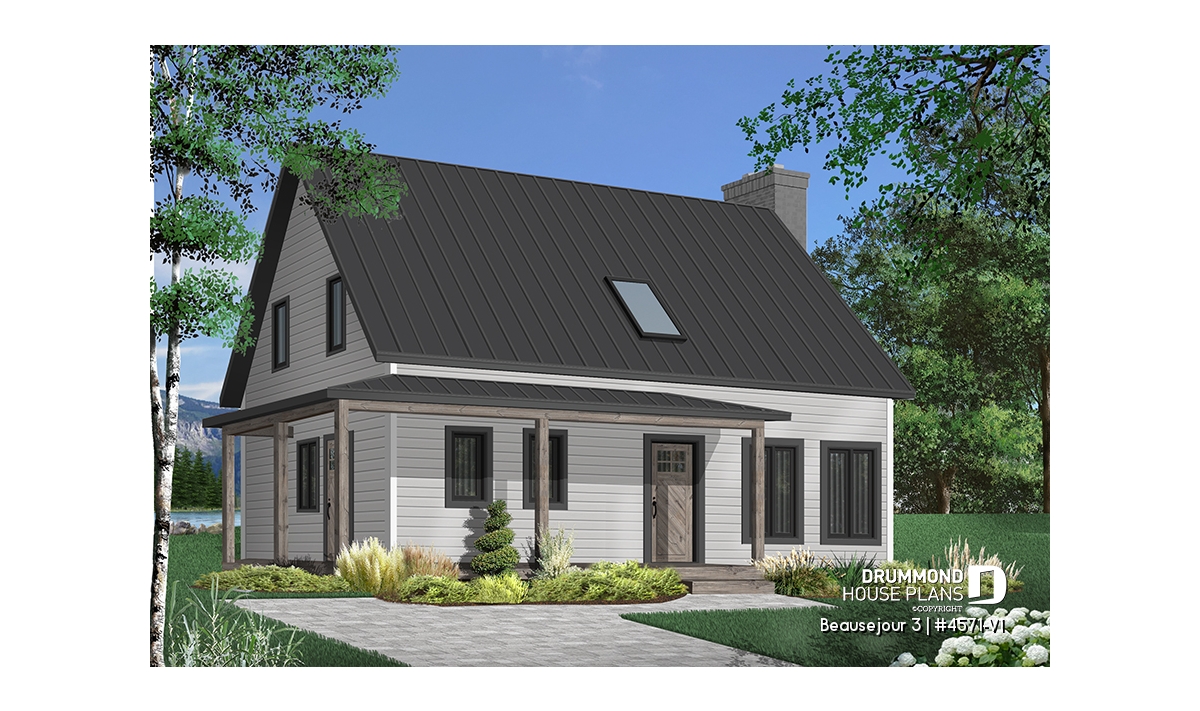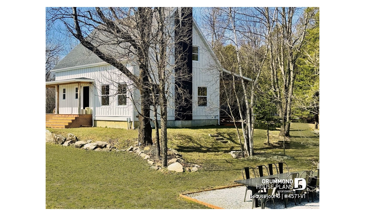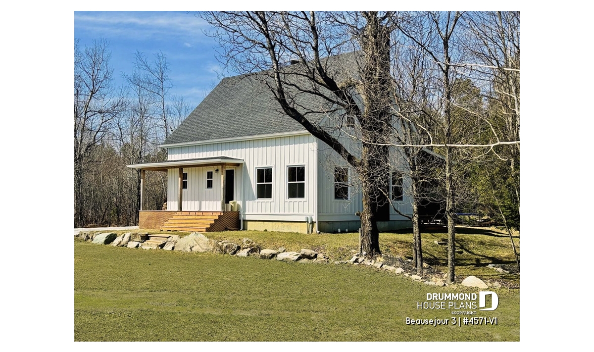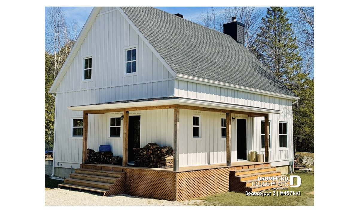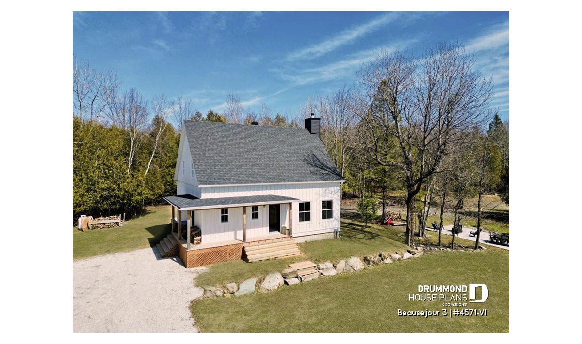 Impossible not to fall in love with this new country house plan, named Beausejour 3 or plan # 4571-V1. This new country house plan offers a multitude of covered balconies, a traditional and beautiful red brick exterior chimney, a very trendy dark metal roof as well as popular shades this year which are dark gray amalgamated with shades of white and wood. Also there is a large covered patio at the back, large enough to receive an outdoor kitchen, a table and 6 chairs as well as a lounge area allowing you to appreciate your back yard while being comfortably sheltered from the elements.
