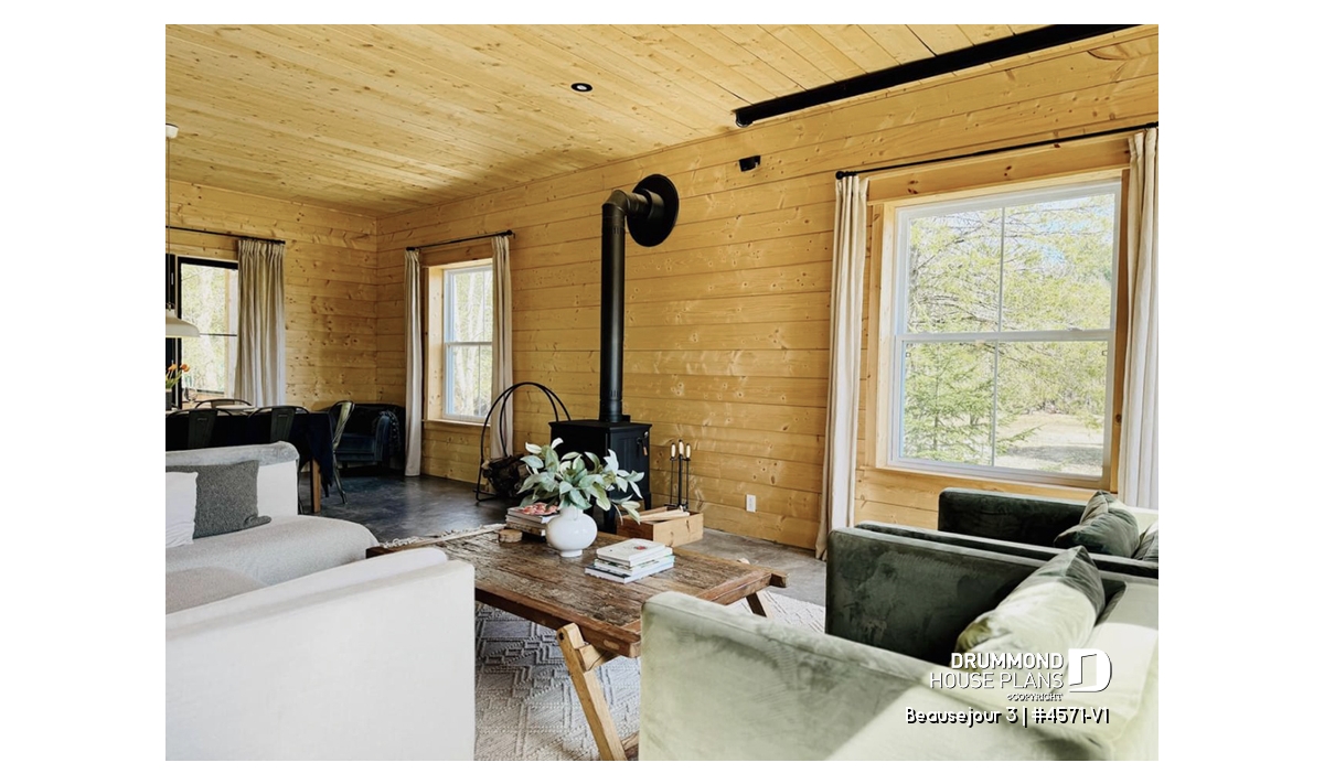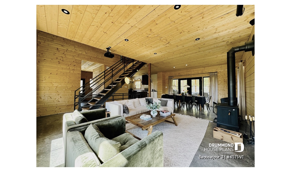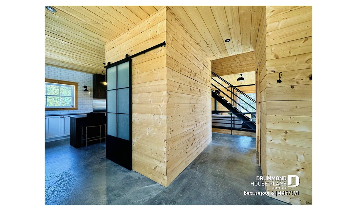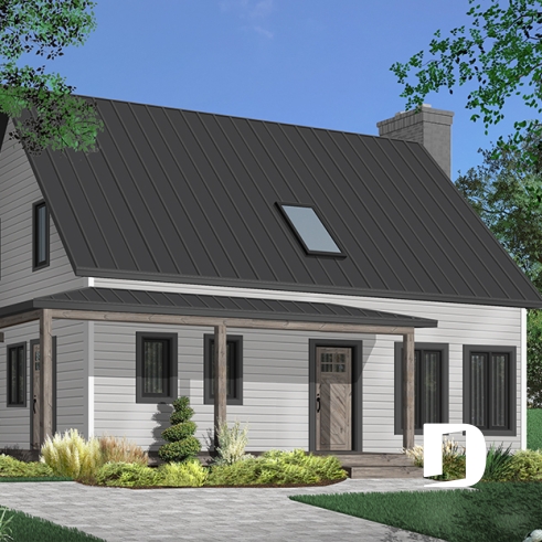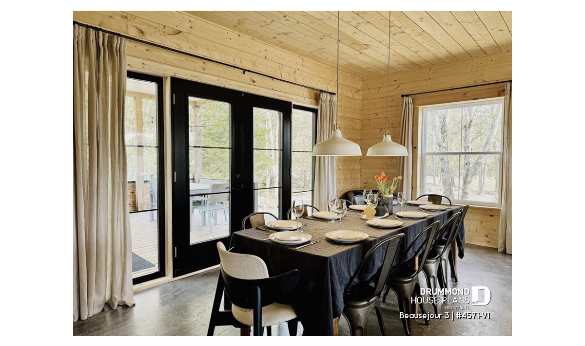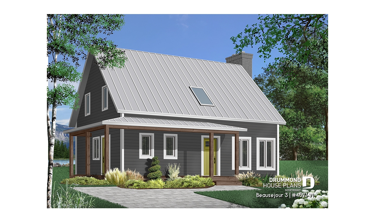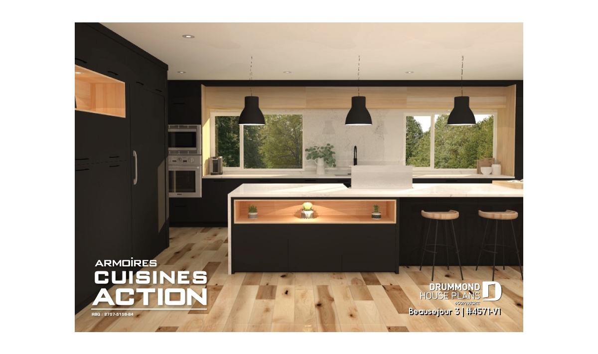 Impossible not to fall in love with this new country house plan, named Beausejour 3 or plan # 4571-V1. This new country house plan offers a multitude of covered balconies, a traditional and beautiful red brick exterior chimney, a very trendy dark metal roof as well as popular shades this year which are dark gray amalgamated with shades of white and wood. Also there is a large covered patio at the back, large enough to receive an outdoor kitchen, a table and 6 chairs as well as a lounge area allowing you to appreciate your back yard while being comfortably sheltered from the elements.