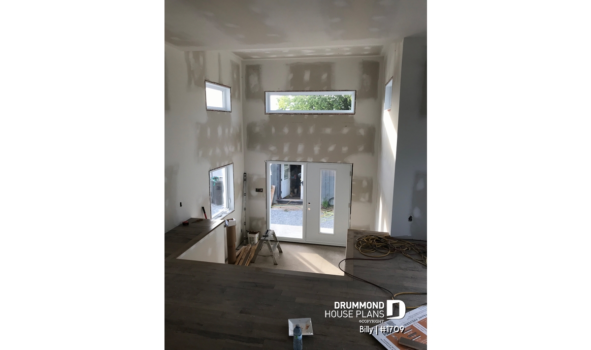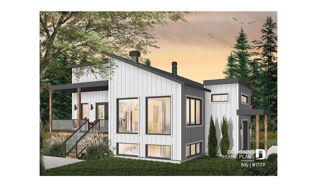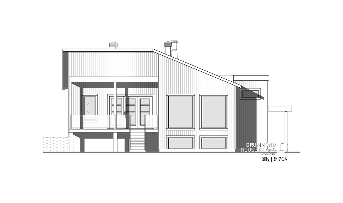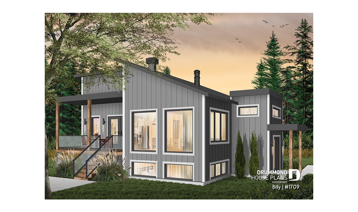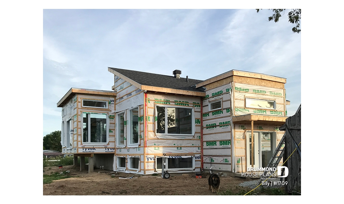 Of Scandinavian spirit, this modern home was designed for a corner or angled lot of a panoramic view. At the entrance, there is a large closet and direct access to the basement and main floor. With its numerous windows, the open floor concept allows for a spectacular view regardless of your location in the house. A spacious kitchen with a large pantry and also has a triple door access to a covered terrace located on the left side of the house. The master suite is separated from the bathroom by a walk-in where there is the washer / dryer. A wood stove was placed in the main living area, allowing us to imagine that the ideal location for this house may be in the countryside. Ideal for a couple without children or with small children. The basement has been designed to accommodate other rooms should the need arise.