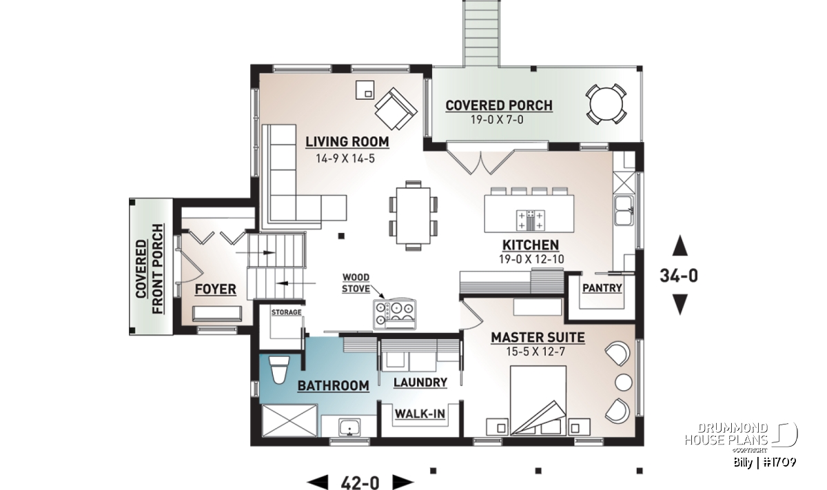Open floor layout, Gound floor laundry room, Lunch counter, Panoramic view, Pantry, Island, Wood stove, Master suite on main, Covered patios, Walk-in master bed.