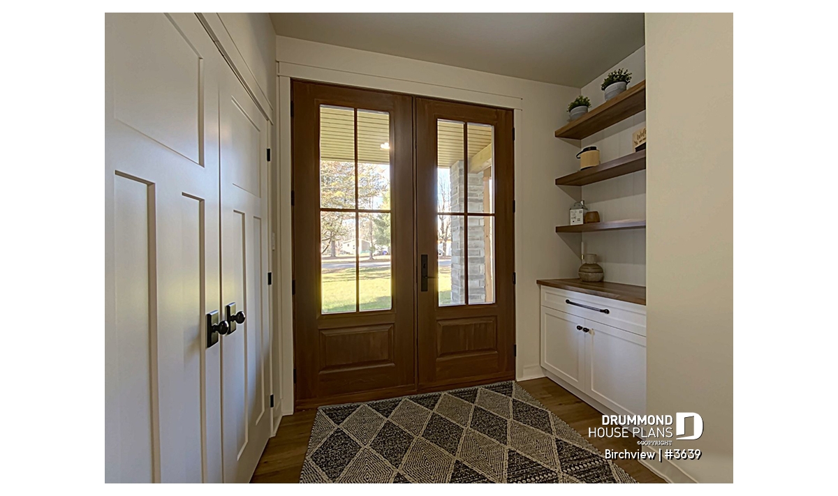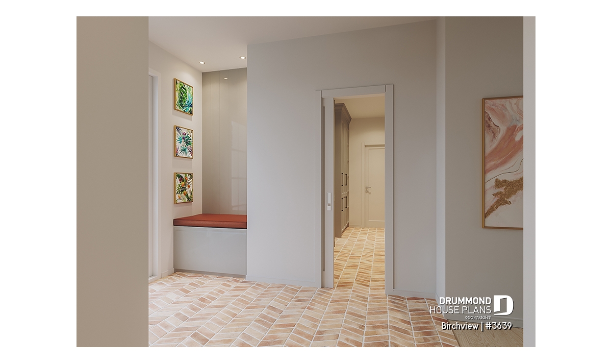 Entrance hall with coat closet and a bench for guests, and located near the mudroom designated for the occupants of the house.