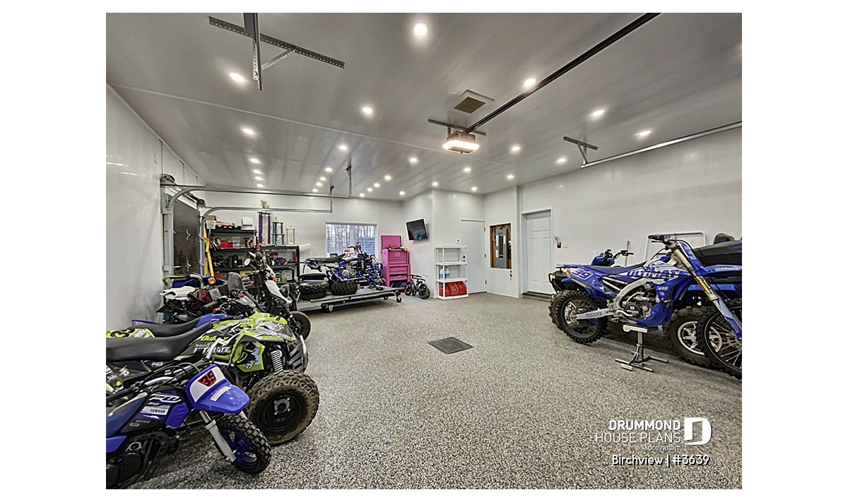 The one car garage is spacious and allows the storage of a lawn tractor (or others). In addition, you'll find a workshop area and the mechanical room.